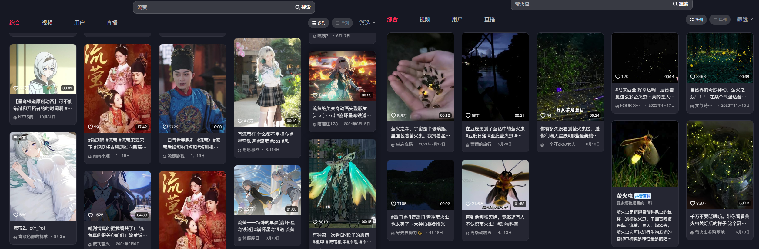 >>547633120he's right, Firefly's name is not the same as what chinese use when talking about the insect, 流萤 (something like "flowing firefly") while the colloquial term for firefly is 萤火虫, you can check on douyinhttps://www.douyin.com/root/search/%E8%90%A4%E7%81%AB%E8%99%AB?aid=1b83c54a-2ed7-45f7-ba2f-c85ae8aecd23&type=generalhttps://www.douyin.com/root/search/%E6%B5%81%E8%90%A4?aid=23b65ab5-c53e-4529-a188-4e1dcf697dc3&type=general