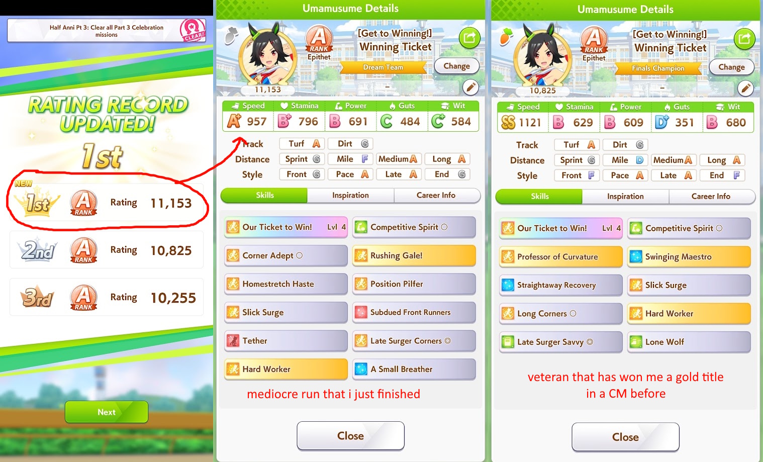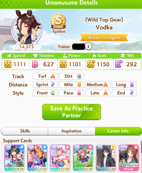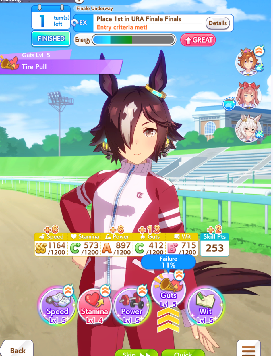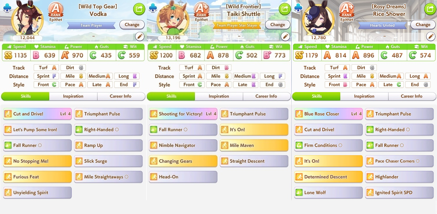 >>547674072>>547674158Thank you for the specific training tips. I shall follow them to update my TT team.>still trying to build for MileI didn't know the 3 Speed 2 Wit Riko Unity Cup deck is specific for Miles. What's the equivalent for Longs or Mediums? I was wondering how exactly you'll get enough Stamina or other stats with that deck.>I really hope you made it in to Finals AYou can thank me for giving at least 30 other people a free win so they make it to Round 2 Group A.