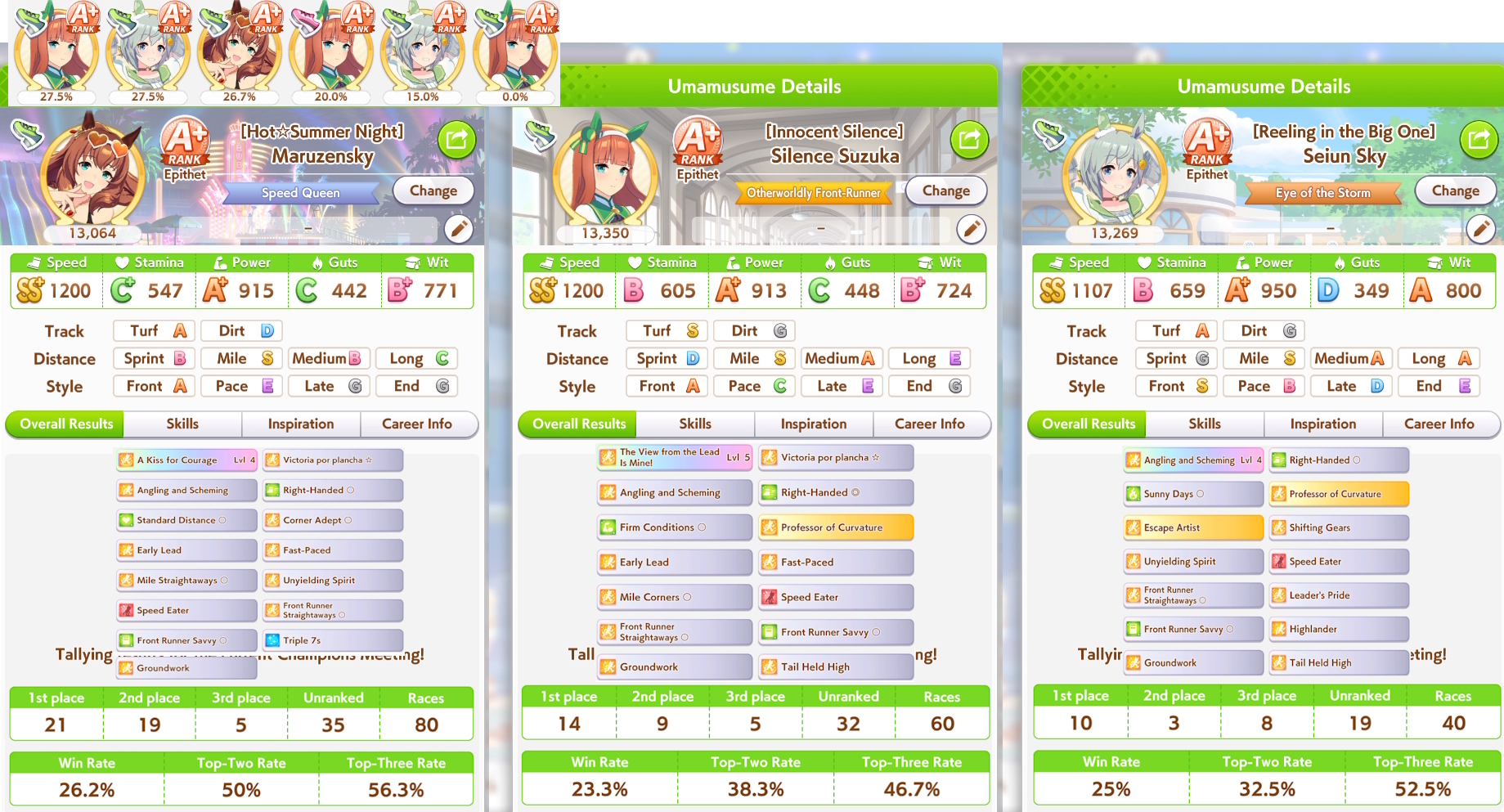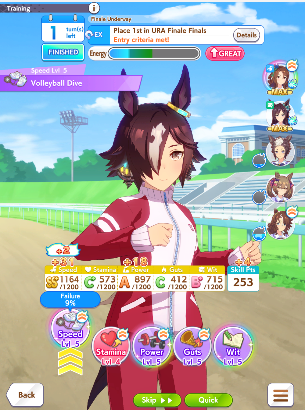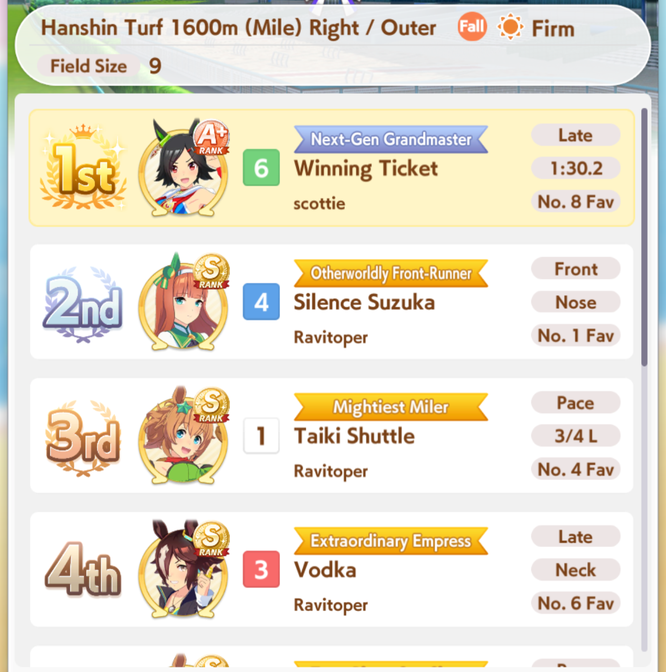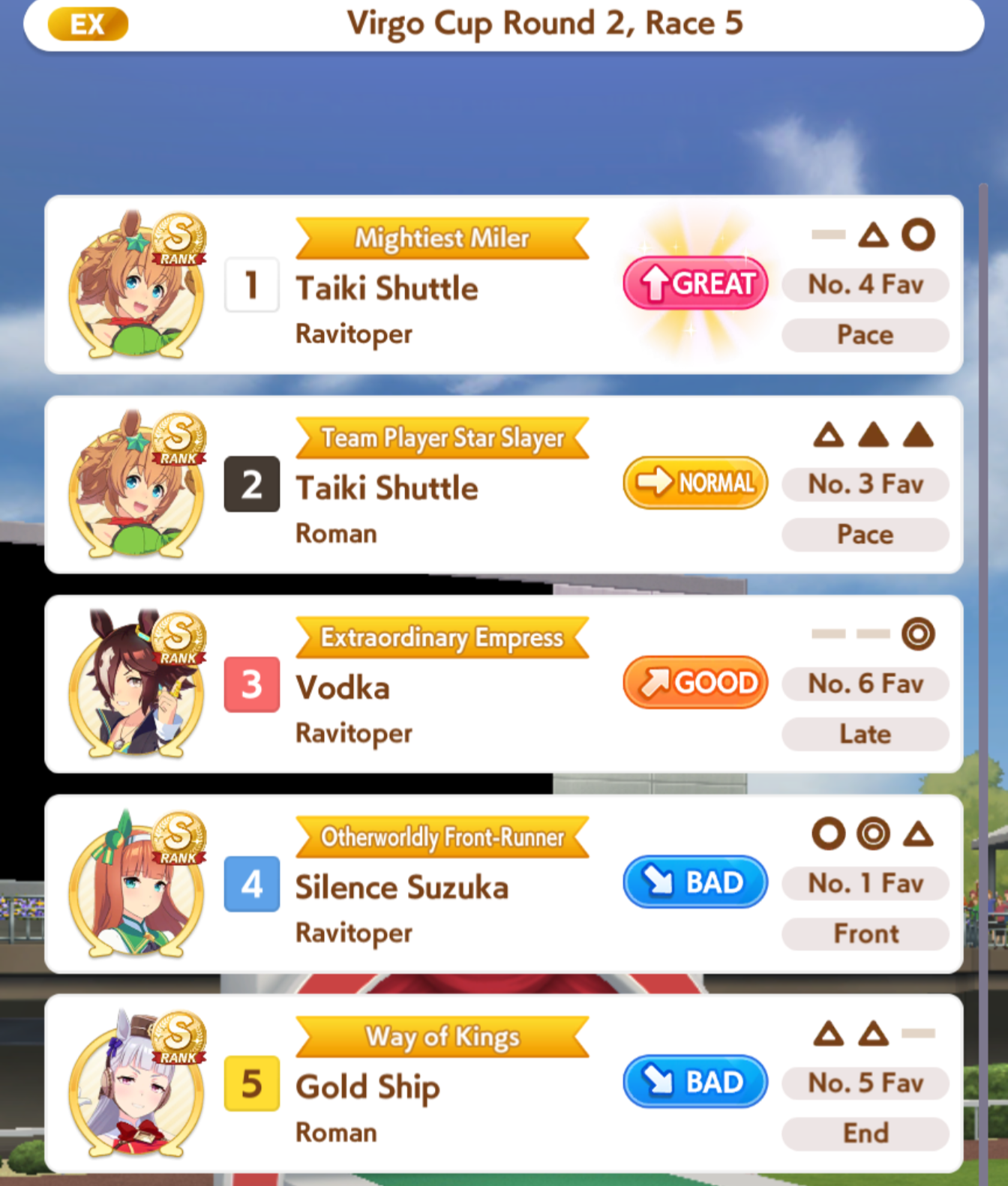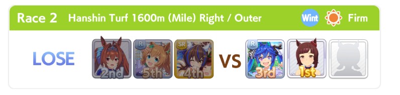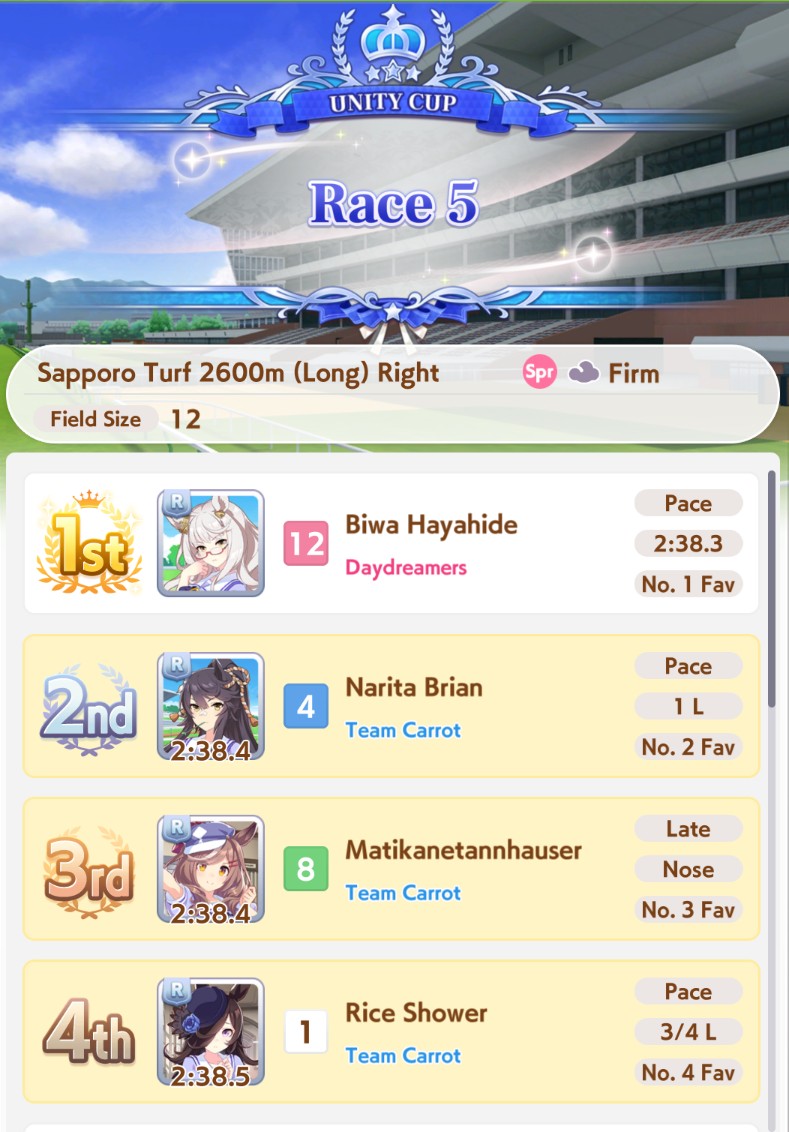 >>547663560She got 11th, you have to understand that sometimes it's not just track length but every race pretty much has it's own quirks like up/downhills. This applies to real horse racing as well.