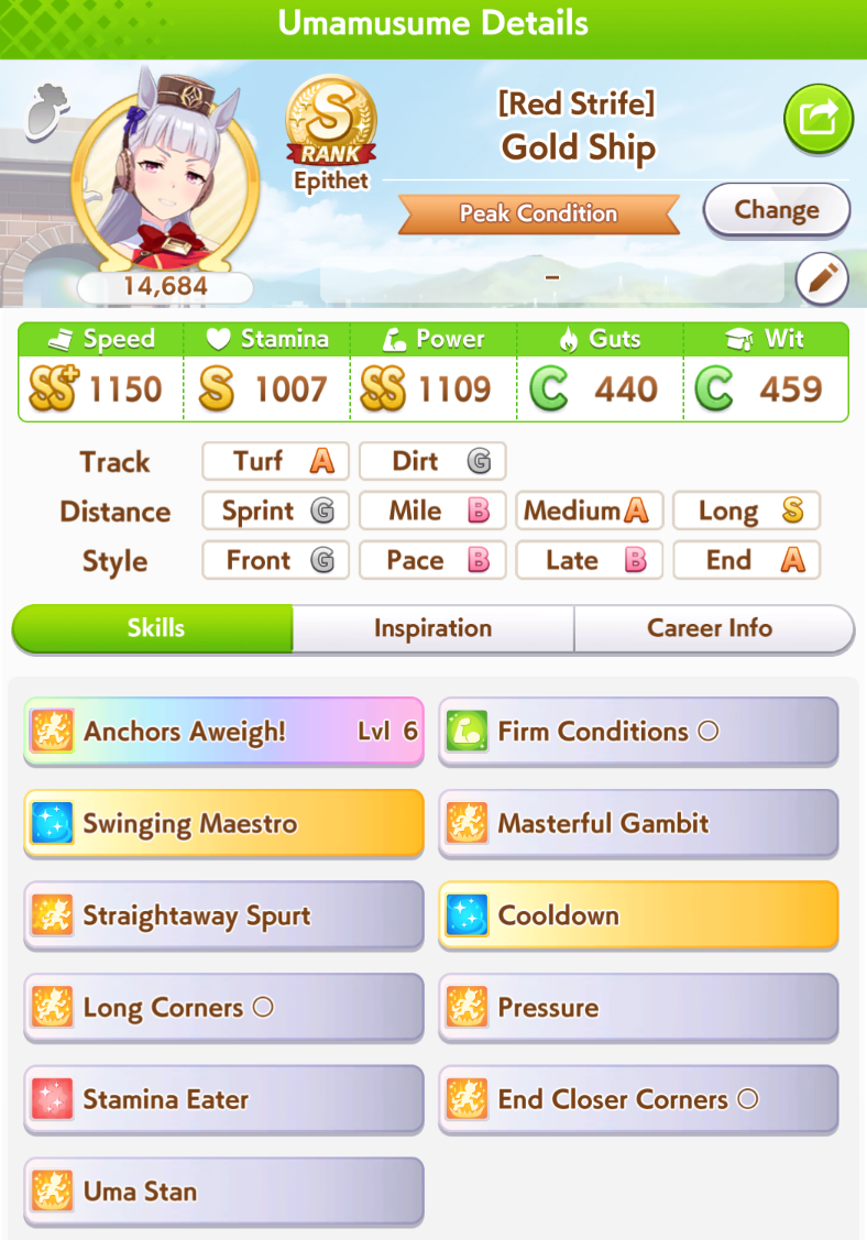 Hello, i'm kind of a noob at building good umas, what would you guys get on this one? please, i'm kinda lost aside from the main good skills like mile maven.