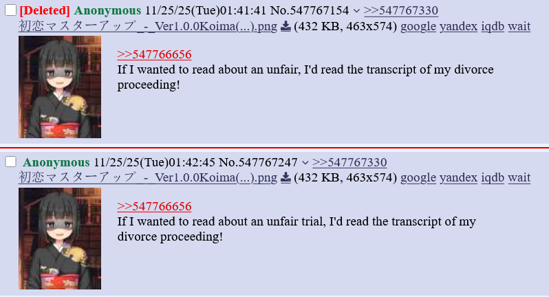 >>547766656If I wanted to read about an unfair trial, I'd read the transcript of my divorce proceeding!
