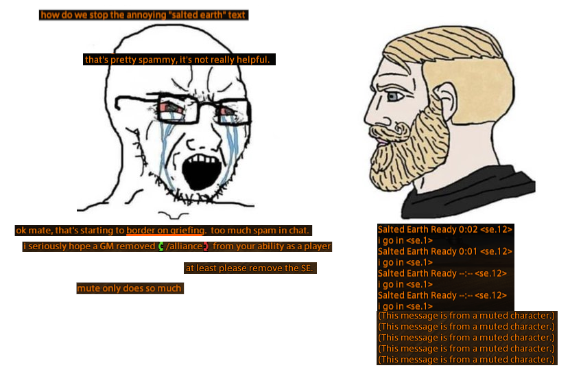 >>547837194WoW rpers are such tattle-tells, I used to grief them all the time during WOTLK/Cata era with Piccolo of the Flaming Fire and other gadgets and gizmos and my guild leader kept messaging me and telling me when someone complained (she didn't care because she thought rpers were melodramatic.) When did this happen to you? Wondering if that culture is still there.
