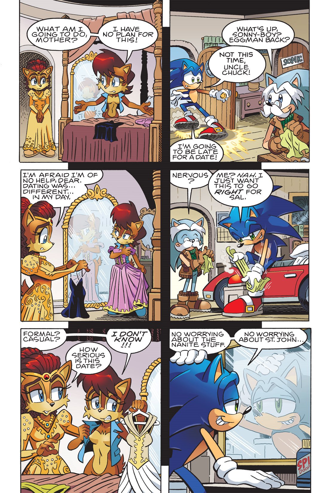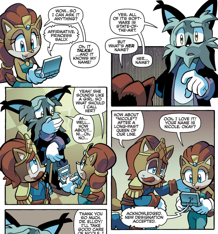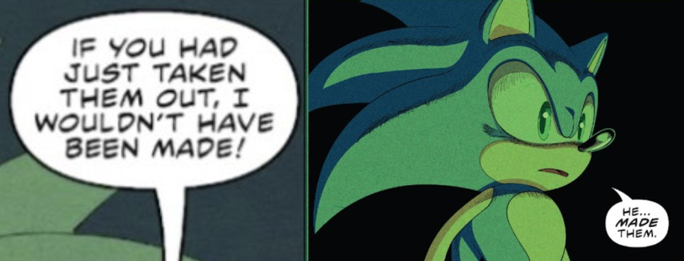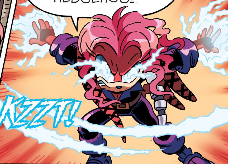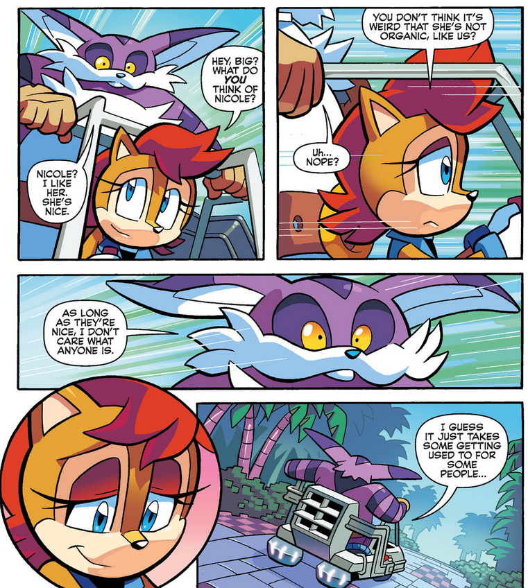 Interesting contradiction. In Archie Sonic Universe 71 we see child Sally with irises. But it is already established that in the Archie reboot, Irises are a biological thing. We already saw an older classic Sally without irises. This means she gained and lost them.