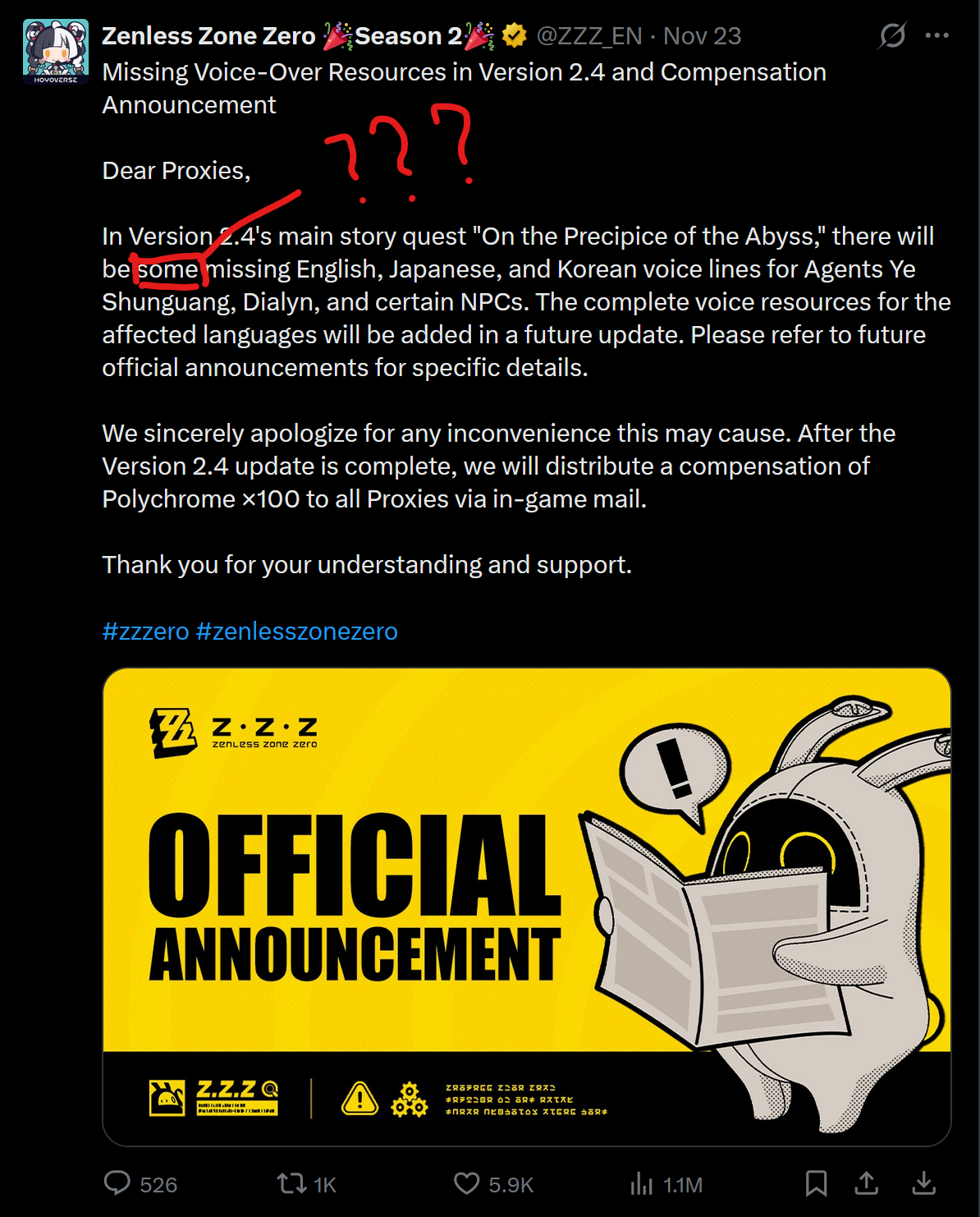 >>547876739>ZZZ devs>LyingNever happened before