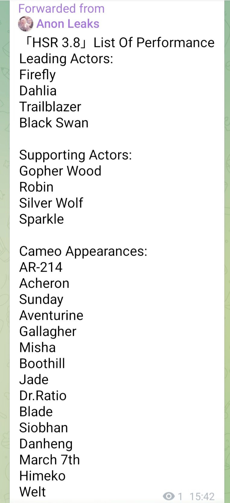 >Current Character Banners: Cyrene, Phainon, Cipher, Mydei + Pela, Lynx, Moze - https://www.hoyolab.com/article/42482837