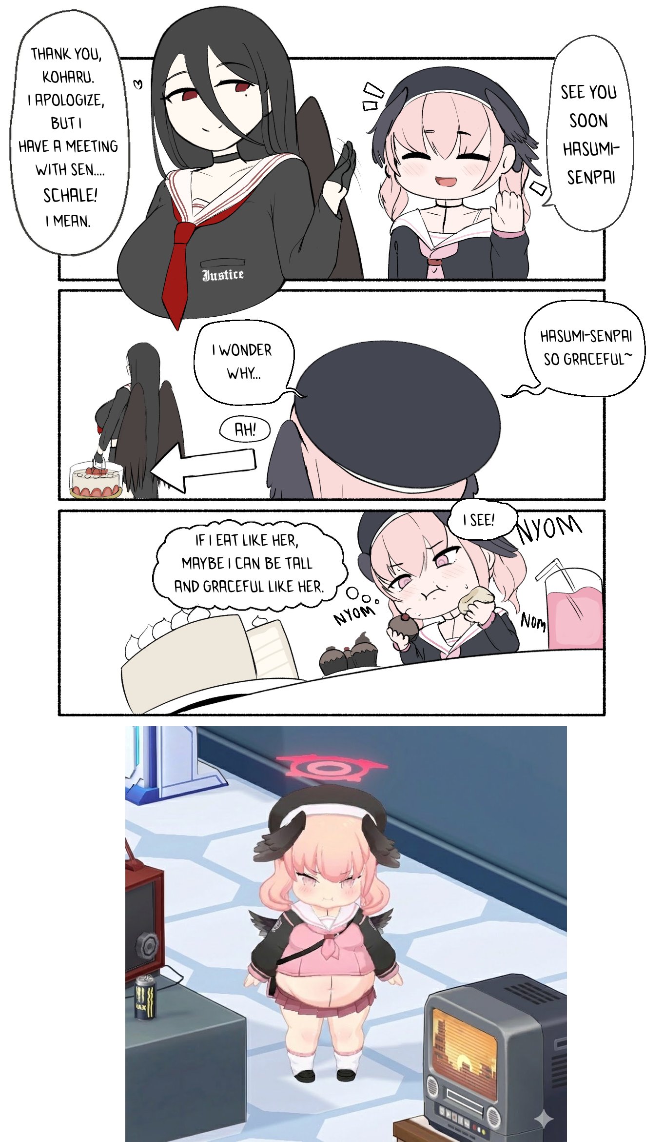 >>548000381Like every good BA story just has that moment where they go "Drama is too hard, lets just run in guns blazing", and it works. BA is an anti drama story where whenever the girls get stuck, and you expect them to brood, every now and then they go "Can't we just solve this with violence" and they end up shooting a bunch of robot men while fucking shit up. Hyakki is a straight forward drama story that would work in any game, but it lacks a certain quality other volumes have at the same time. You see this sentence as an absolute insult, its not an insult, its a fine drama story but it lacks a little something as well, something that BA should have.I said the police raid is the "BA moment" of volume 4; but in retrospect the "BA moment" of volume 4 was when they all just decided to rob a bunch of homeless robots and steal all their food. Its those moments where the girls just do something that feels out of character or immoral, but somehow its perfect for blue archive. Every character is immediately willing to do retarded or immoral shit, but not in a malicious way. They treat it the same as a slice of life moment when they're all talking about suddenly kidnapping the president.