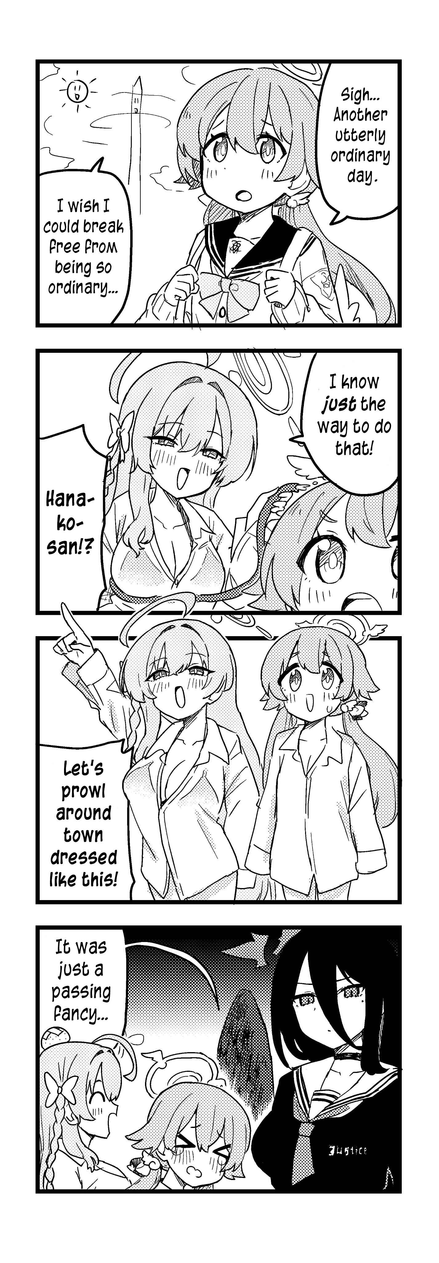 >>548000381>The entire bank robbery scene is [...]But that is a trait of Abydos' story and Abydos alone, if everyone were bank robbers in BA then that wouldnt really be something unique. Furthermore that shtick only stuck with Shiroko, not Abydos as a whole.>Every other volume has that crazy moment that defines the story [...]I dont think the raid on the police was that interesting of a moment to begin with, there's nothing outstanding happening and its resultant of plot convenience that the Police just so happens to keep papers of their illegal weapon selling affair on their incompetently guarded headquarters. The one that went crazy was Kanna climbing a whole building. I do like BA's crazy antics but there's also ground for a more character oriented story like Chapter 3 of Vol 1 and Vol 5 as a whole, Vol 5 Chapter 2 had Shuro's animal doodle that saved the day and the Ninja powerup, they beat fear with comedy, is that ridiculousness not befitting of BA?