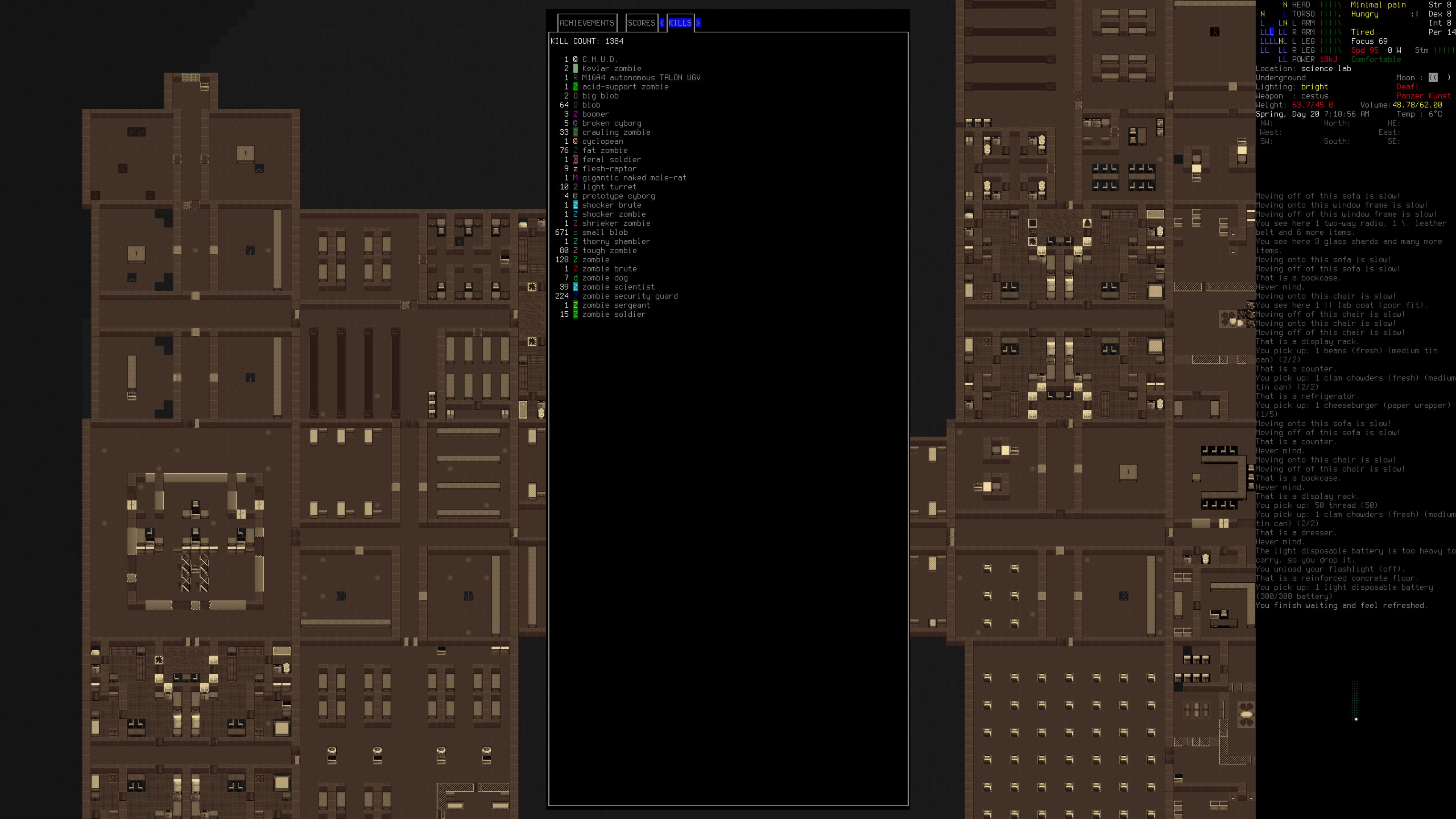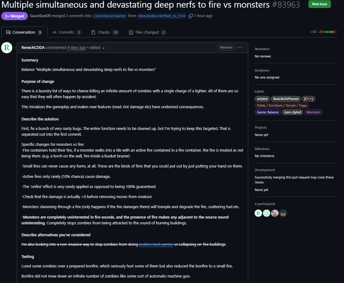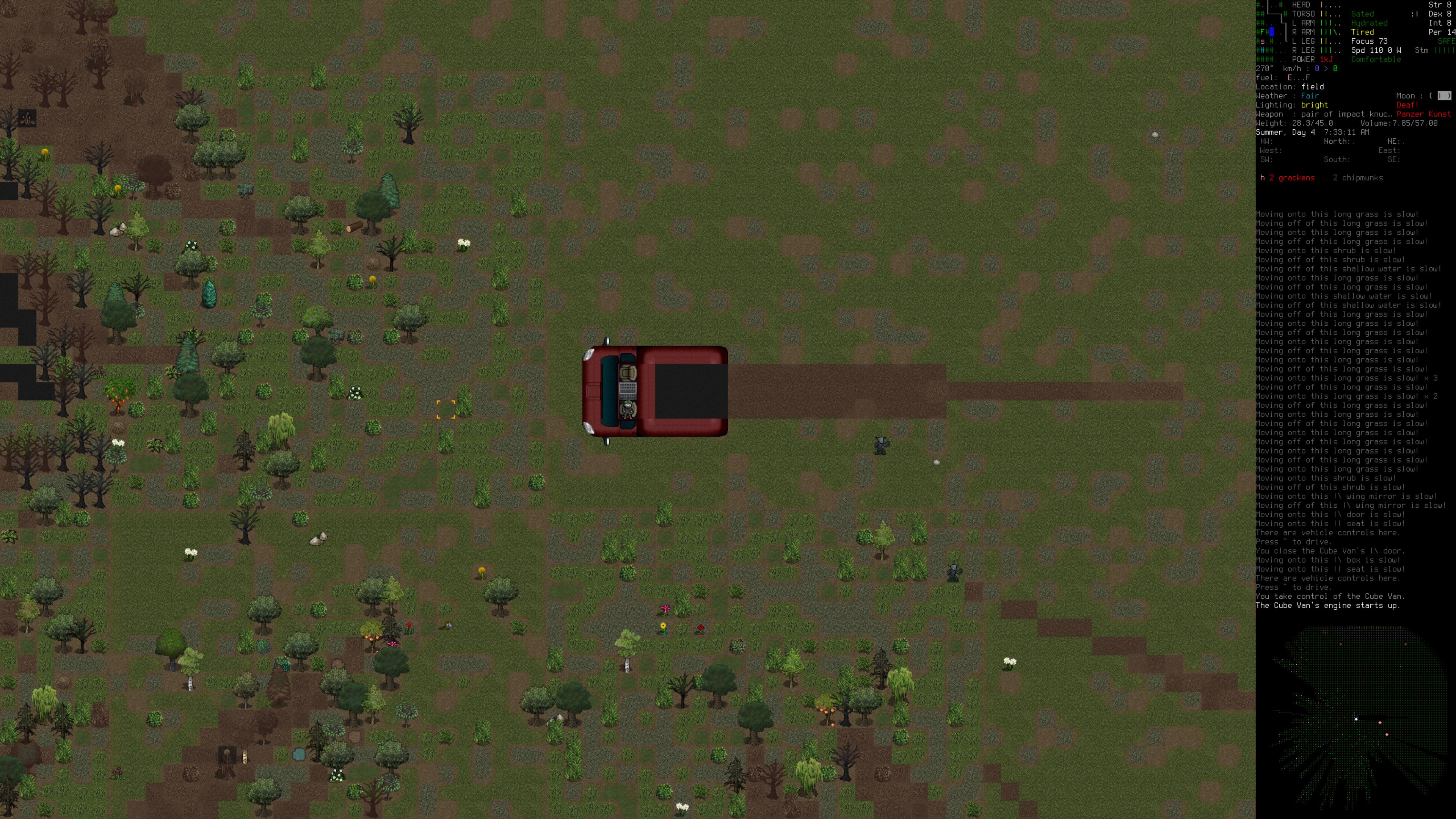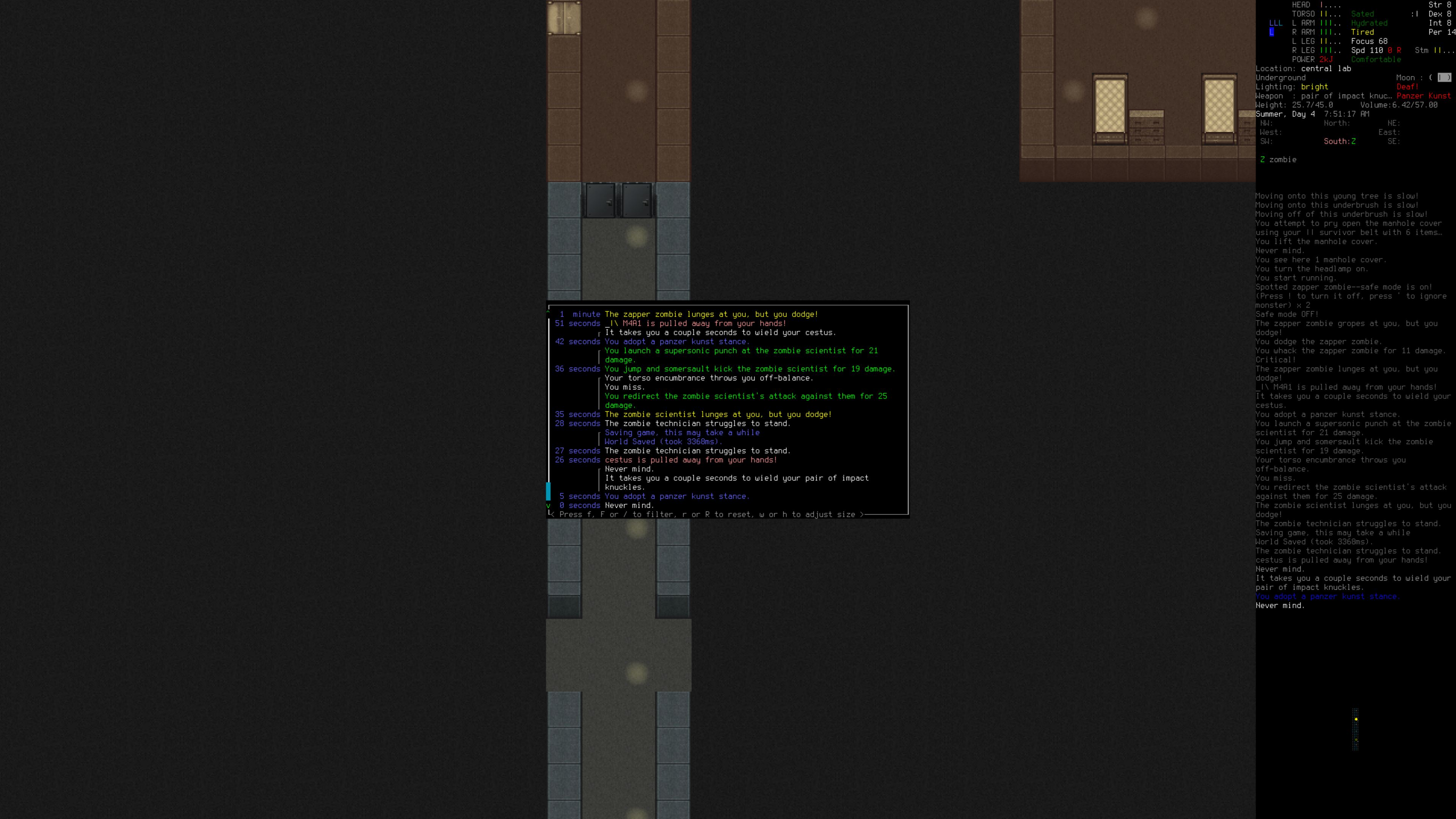 >>547981126You don't think it's a problem till it is a problem. I didn't know what everyone was bitching about, sleeping in my basement at the edge of town took seconds... Then I ended up trying to crash at the top of a resort for a few quick winks while I was out scavenging and I my shit locked up and cranked out a 5 minute increment every other second simming 100 zombies wandering around three floors. There's basically no chance a zombie comes and breaks into the room I'm sleeping in, doubly so since smell doesn't even pass through doors/windows anymore. Skipping it could be "cheating" by letting you just instantly refresh sleep in the middle of combat but desu toggling that on and off is more complicated than popping open the debug menu and setting your tiredness to zero. (I still argue that it should get implemented as a full feature and have a check to see if any nearby zombies want to path to you/sim the first 30 minutes, though I don't know exactly what was in the commit)>>547981069Anon remembered to updated the news, pogI think /vst/ has a general more than /tg/ these days tho, my bad.
