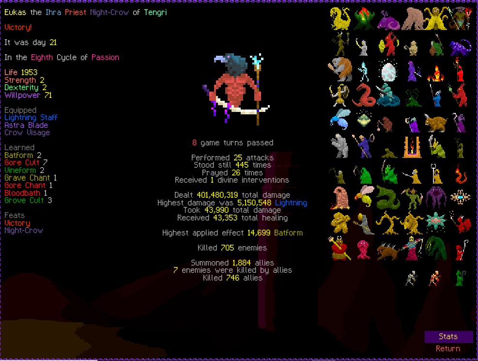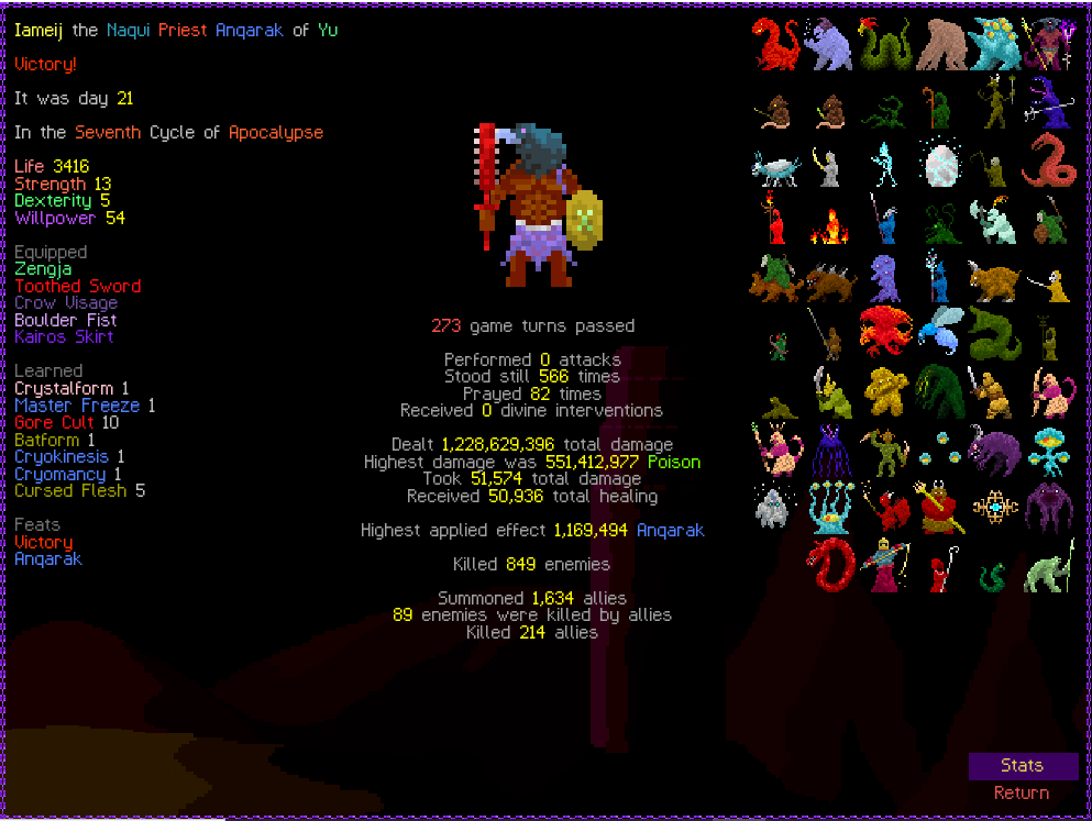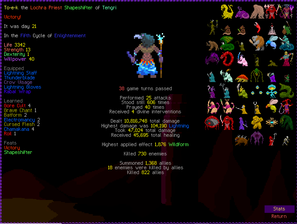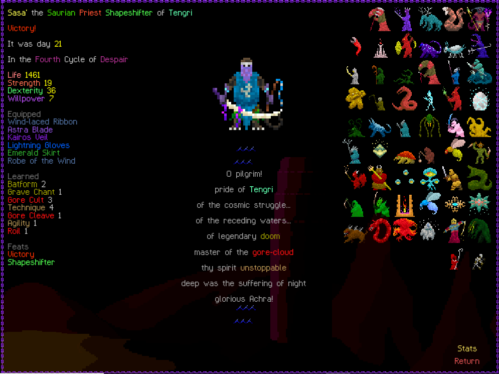 Previous thread: >>546191359 Featured game by thumbnail: tome4 What game are you playing this week, anon? >Are mystery dungeon games allowed in this thread? Generally yes, most mystery dungeon games(Shiren the Wanderer, Pokemon Mystery Dungeon, Etrian Mystery Dungeon, etc.) can be considered roguelikes >Is Elin/Elona allowed? Yes, they are roguelikes. Please do not post your Little Sister farms >Is Dwarf Fortress allowed? If it's adventure mode, yes. But adventure mode is boring. /tg/ has a general for fortress mode playthroughs but you can share here too! >FAQ https://l.idrix.fr/J7sOv >What to Play https://l.idrix.fr/eYNOh >Individual Game Pastas https://l.idrix.fr/wXd8t >Roguelike Archive (Collection of pretty much every free roguelike there is) https://archive.org/details/ArchiveRL.7z >/rlg/'s "most popular" Cataclysm: DDA fork https://github.com/cataclysmbnteam/Cataclysm-BN/releases >RogueBasin News26 Nov 2025 - ROGUE-FP v3.7.2 Steam gog26 Nov 2025 - Tales of Kathay v0.6.0 Open Alpha Itch Steam22 Nov 2025 - Overworld v2.6.5 released7 Nov 2025 - Soulash 2 v0.9.13 "Military Management" Steam31 Oct 2025 - Wizard School Dropout Preview 9 "Like a Rolling Stone" released >/rlg/'s shared DCSS online account User: rlgrobin Password: ownfault (or "robin" on Xtahua) Roguelike Servers https://angband.live/ (Angband and variants)