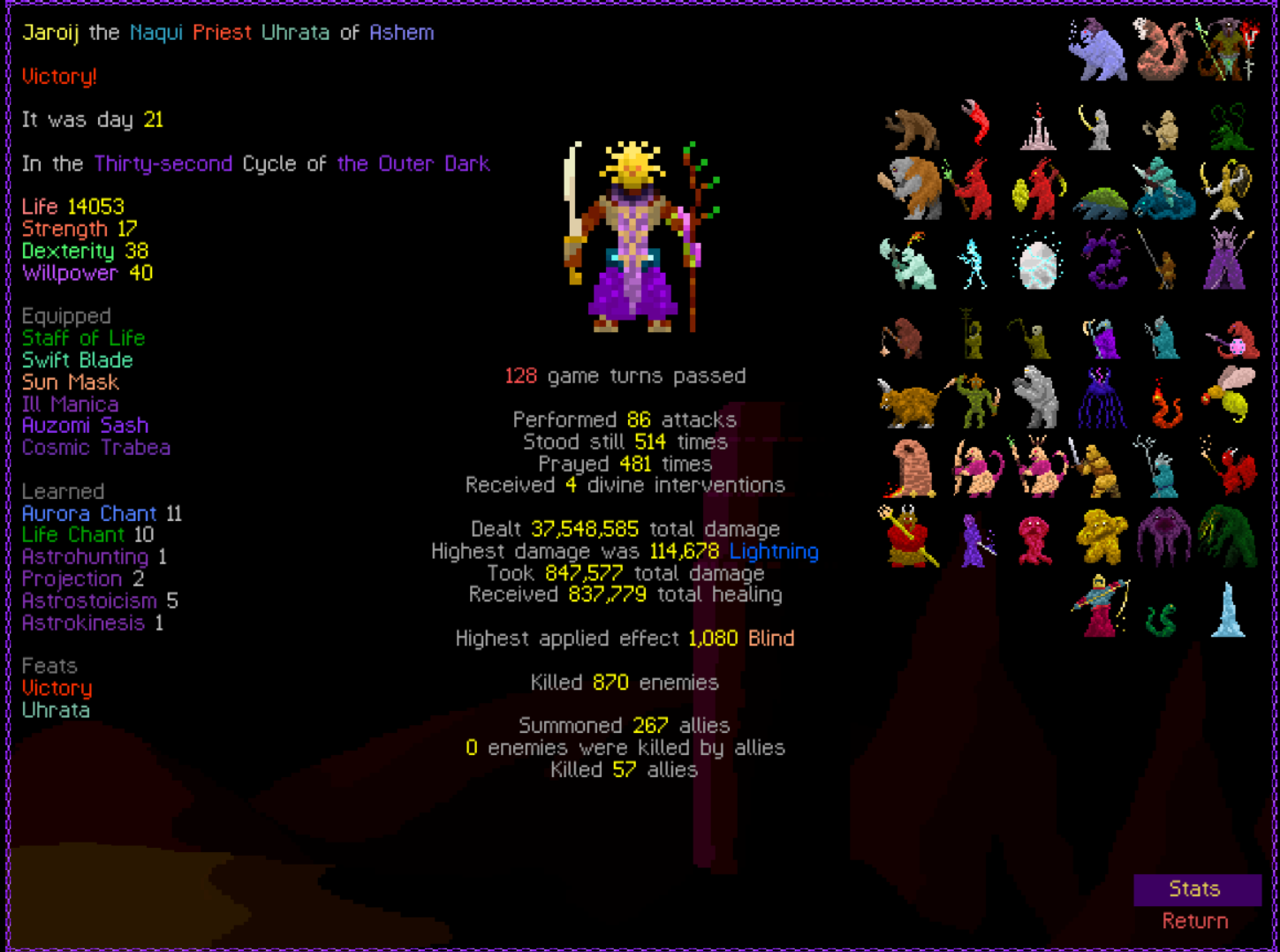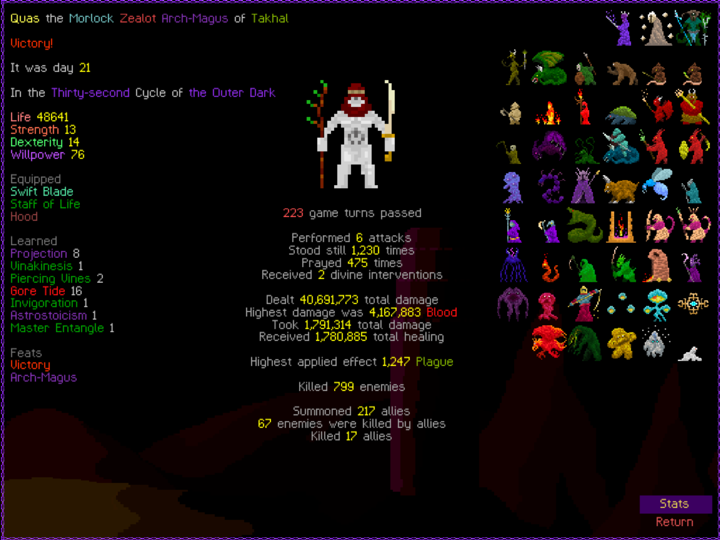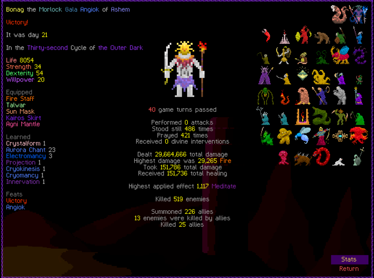 Previous thread: >>546191359 Featured game by thumbnail: tome4 What game are you playing this week, anon? >Are mystery dungeon games allowed in this thread? Generally yes, most mystery dungeon games(Shiren the Wanderer, Pokemon Mystery Dungeon, Etrian Mystery Dungeon, etc.) can be considered roguelikes >Is Elin/Elona allowed? Yes, they are roguelikes. Please do not post your Little Sister farms >Is Dwarf Fortress allowed? If it's adventure mode, yes. But adventure mode is boring. /tg/ has a general for fortress mode playthroughs but you can share here too! >FAQ https://l.idrix.fr/J7sOv >What to Play https://l.idrix.fr/eYNOh >Individual Game Pastas https://l.idrix.fr/wXd8t >Roguelike Archive (Collection of pretty much every free roguelike there is) https://archive.org/details/ArchiveRL.7z >/rlg/'s "most popular" Cataclysm: DDA fork https://github.com/cataclysmbnteam/Cataclysm-BN/releases >RogueBasin News26 Nov 2025 - ROGUE-FP v3.7.2 Steam gog26 Nov 2025 - Tales of Kathay v0.6.0 Open Alpha Itch Steam22 Nov 2025 - Overworld v2.6.5 released7 Nov 2025 - Soulash 2 v0.9.13 "Military Management" Steam31 Oct 2025 - Wizard School Dropout Preview 9 "Like a Rolling Stone" released >/rlg/'s shared DCSS online account User: rlgrobin Password: ownfault (or "robin" on Xtahua) Roguelike Servers https://angband.live/ (Angband and variants)