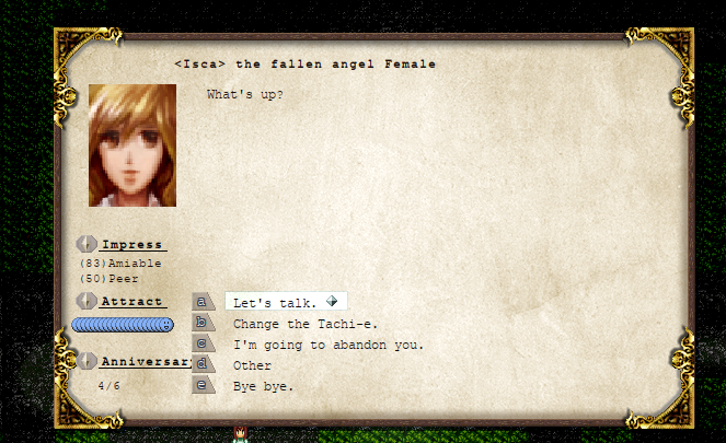 >>548020002The player is the female demon lord and needs to be slayed by a mighty cock-wielding hero, but no hero is brave enough to try their luck with her vagina dentata so she is stuck wandering across the multiverse, looking for someone man enough to take her virginity.