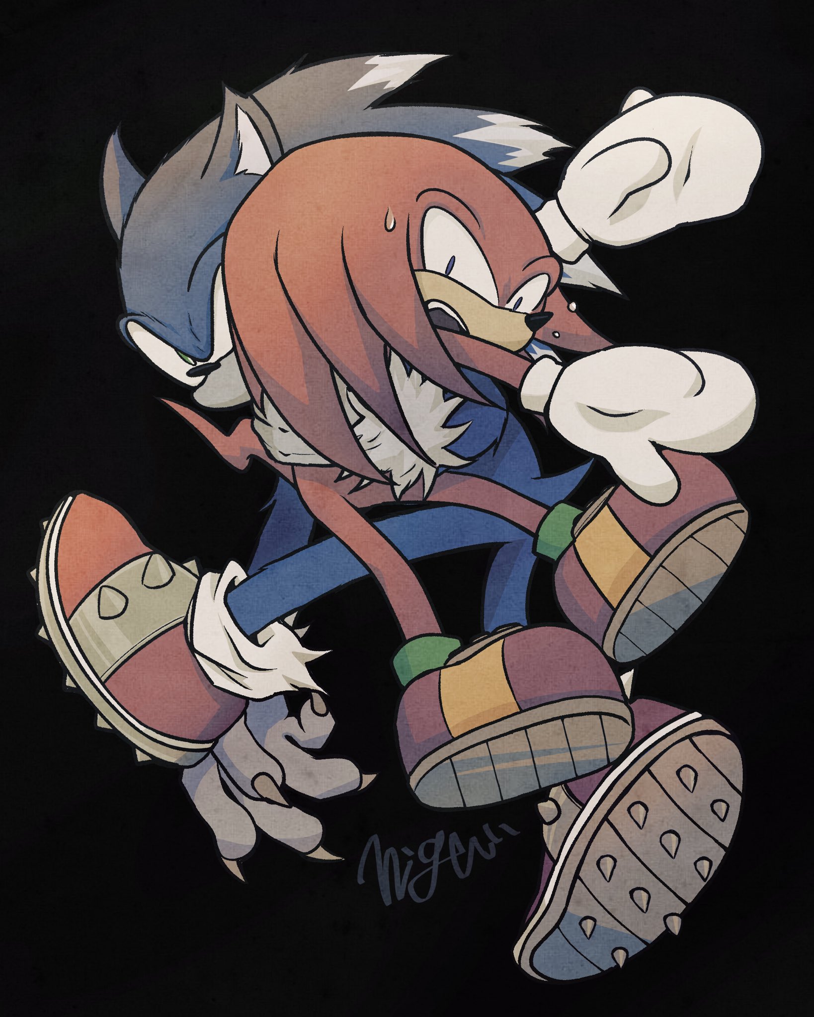 When Knuckles gets pissed, everyone laughs at him, when Knuckles pisses someone else off he gets scared, those are Knuckles' gags.Occasionally Tails doing OOC sciencetalk will stress Knuckles from him trying to understand it and that's also a "please laugh" moment.