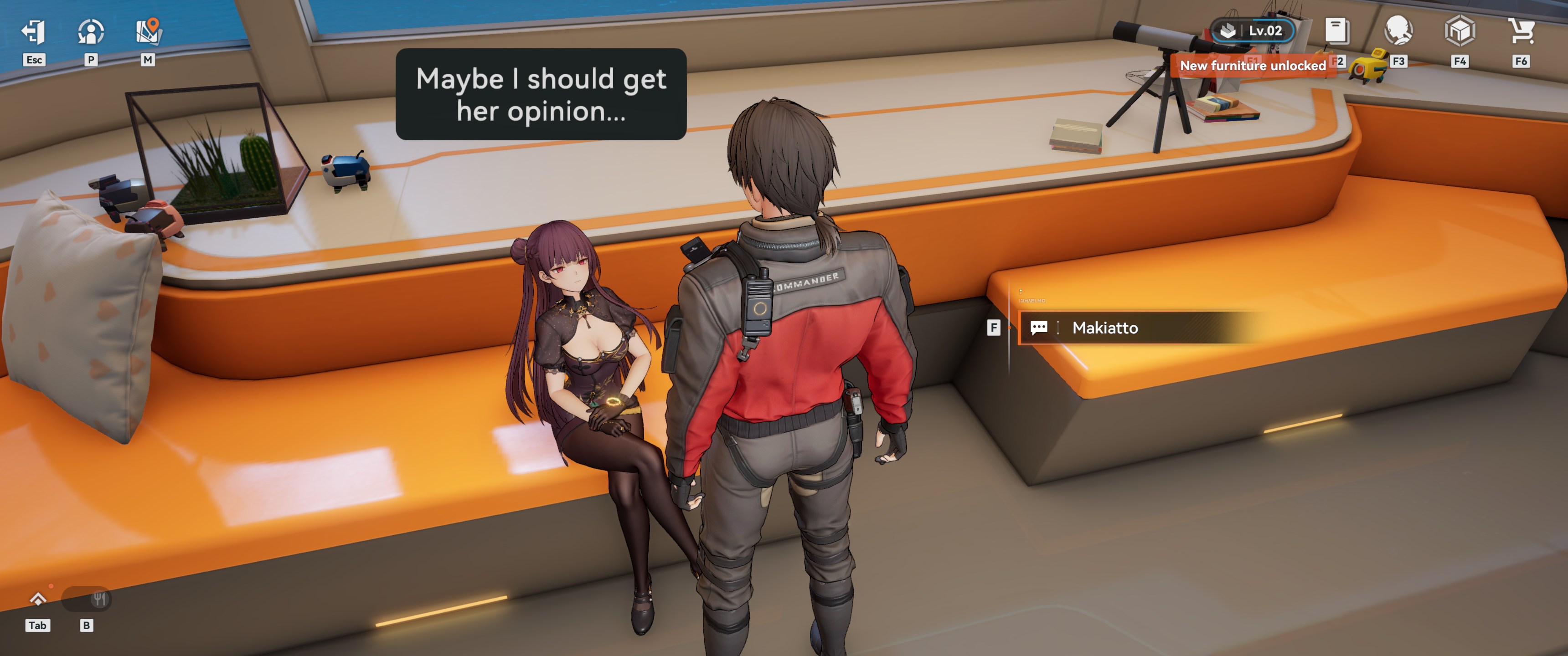 >>548009453No. Unlock furniture with F1, you'll see golden coins on that screen, you need to spend those.