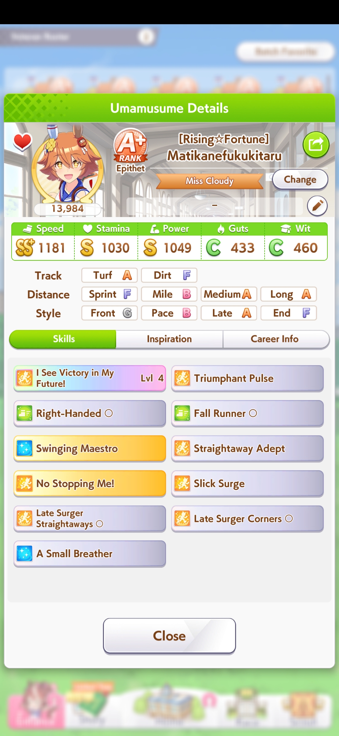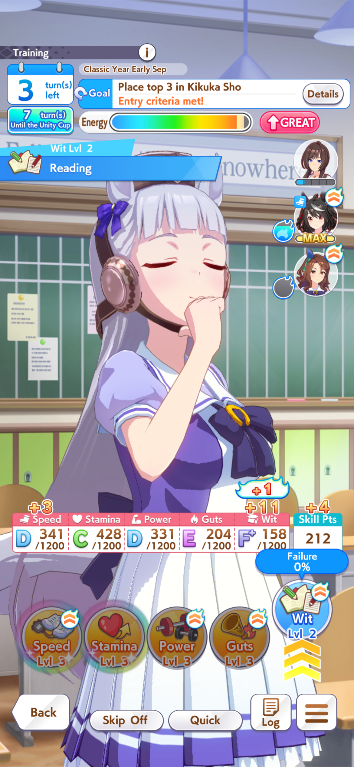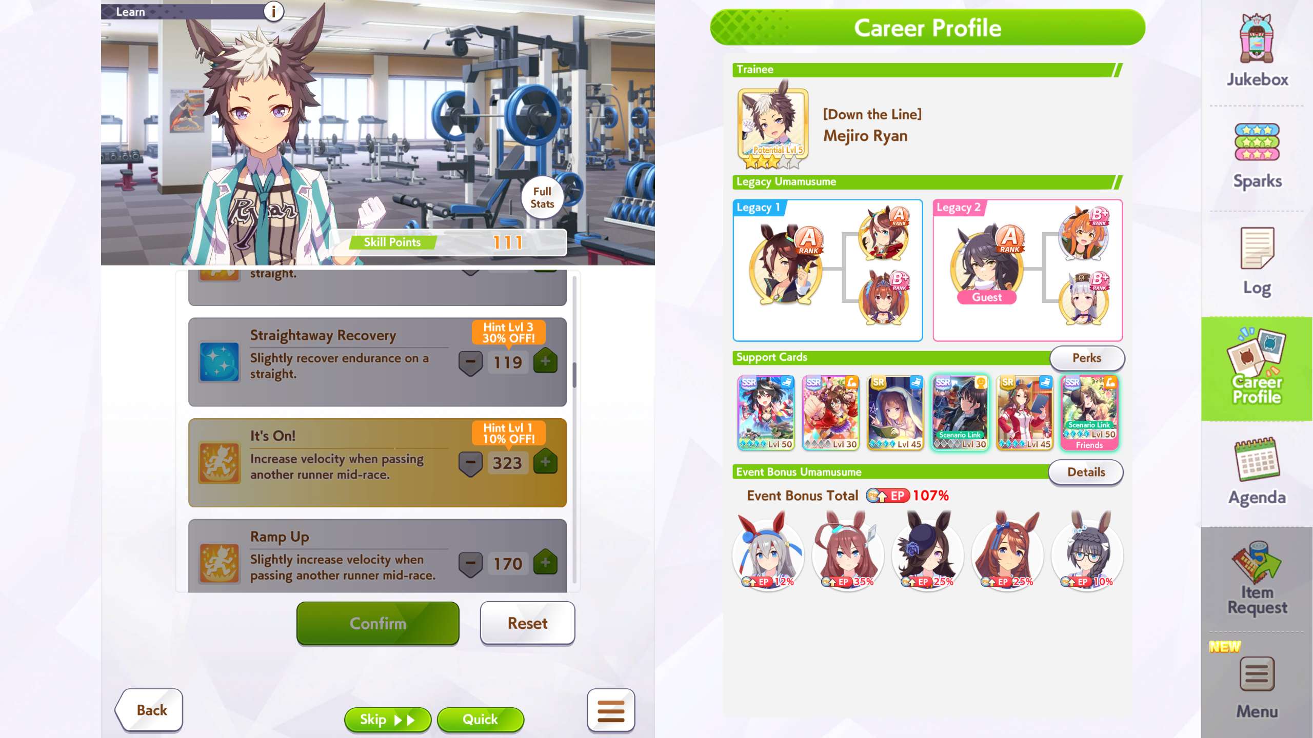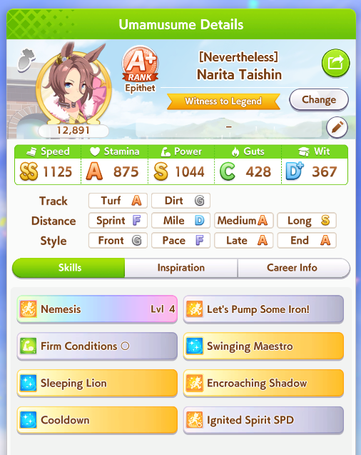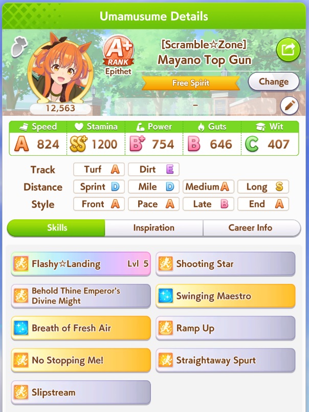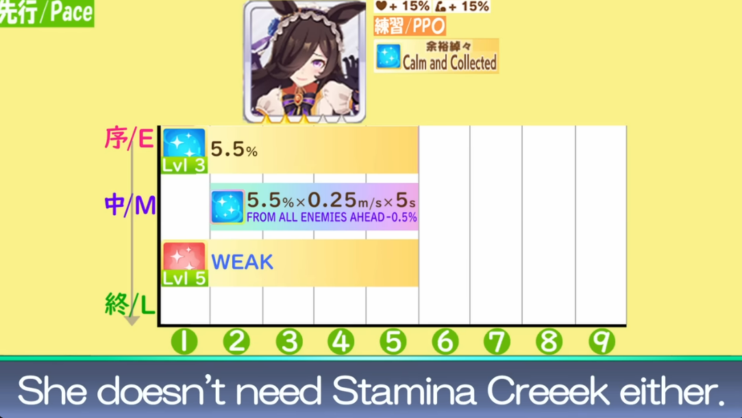 But in even in 3000 meters 800 stamina and 500 guts is enough if she activates her recoveries as pace anyway.
