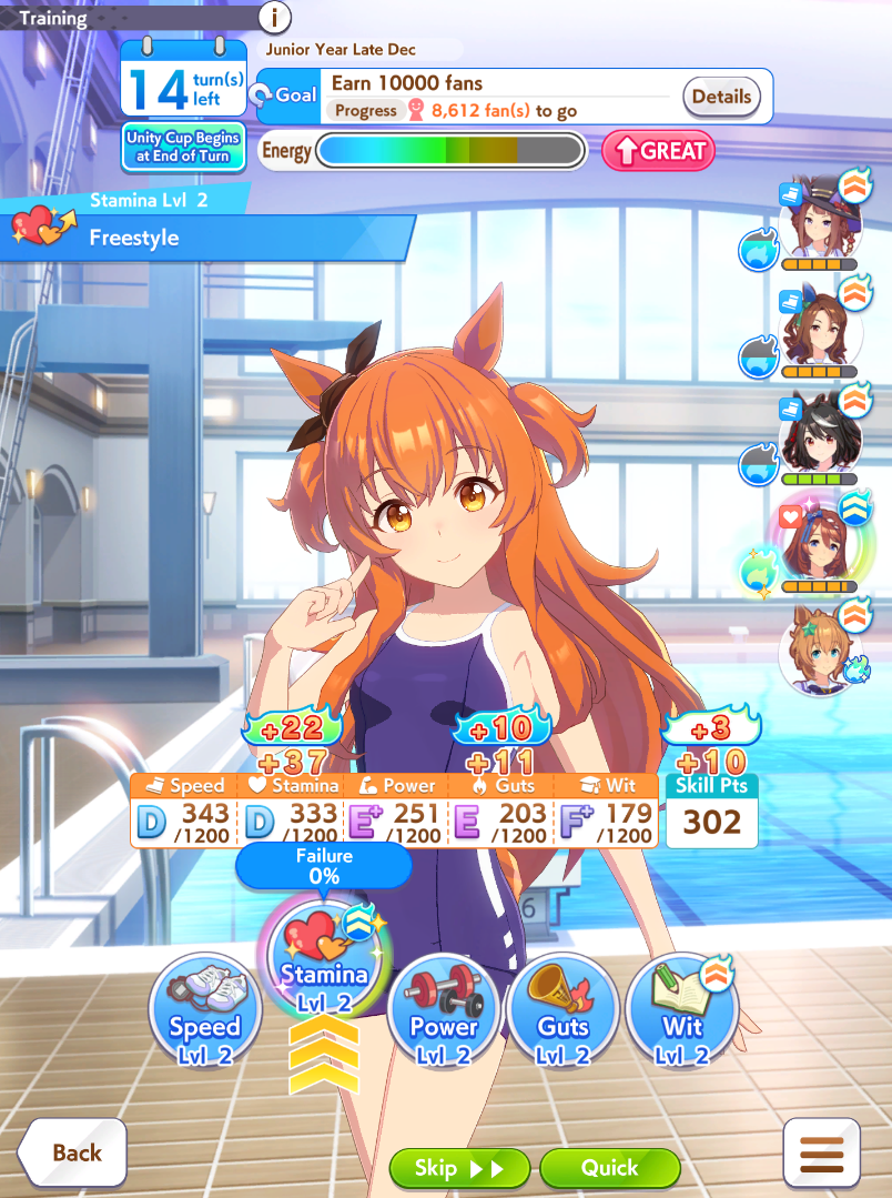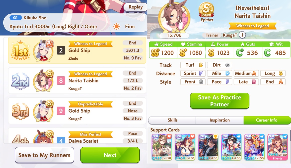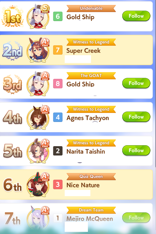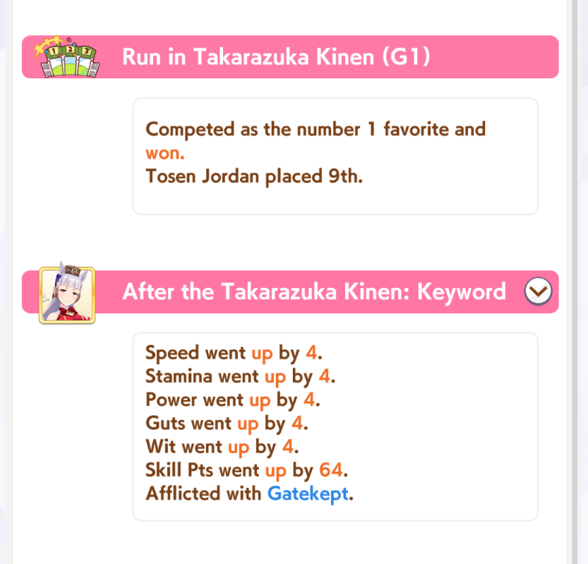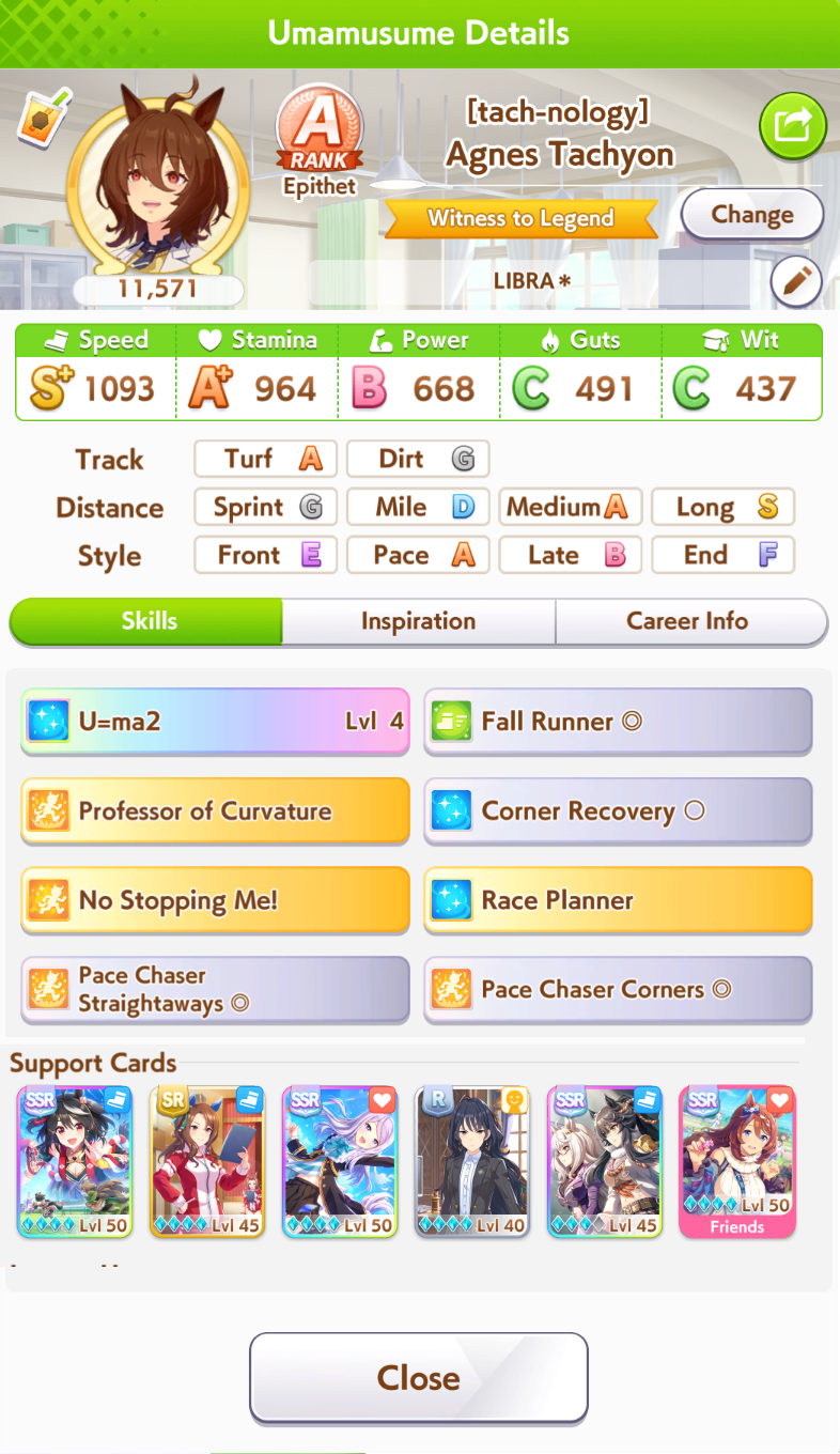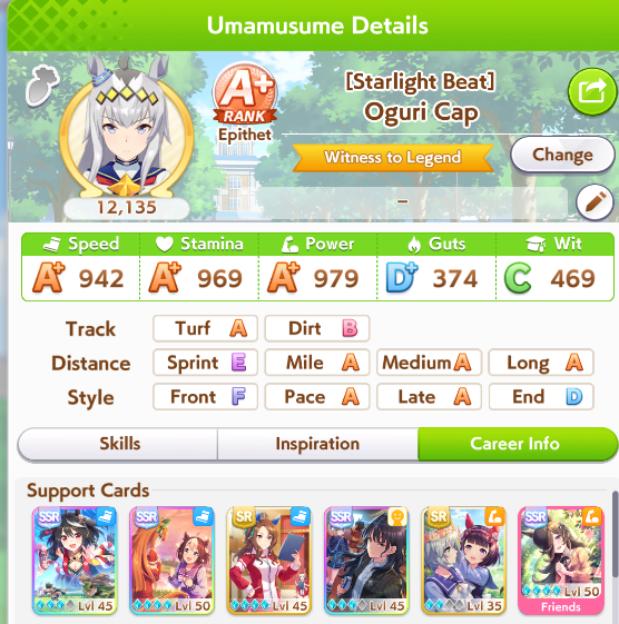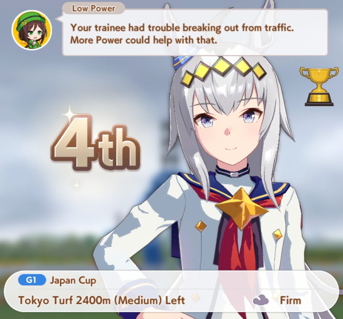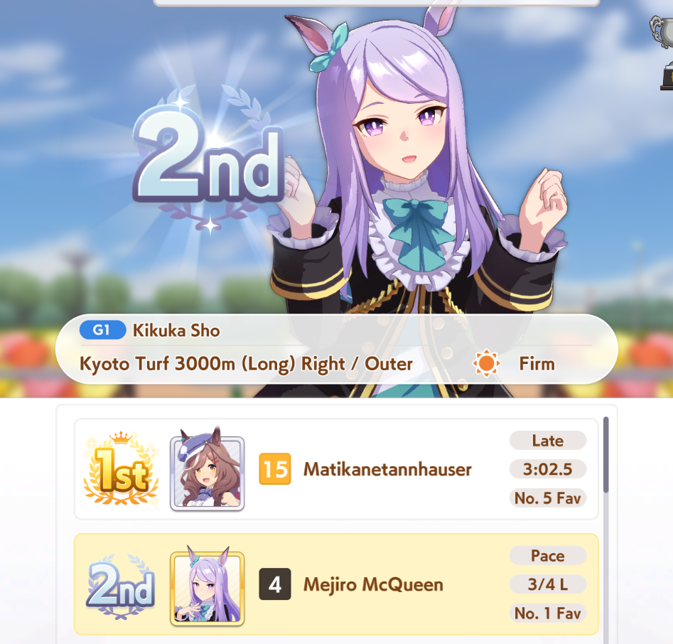 So dial back on the recovery then? I swear that was why my McQueen and Special Week were underperforming in the Gemini Cup - just swinging maestro and Gourmand were not enough. I swear Pace Chaser is a cursed running strat. I can never make pace chasers work outside of career… it’s always the late surgers and end closers doing the heavy lifting