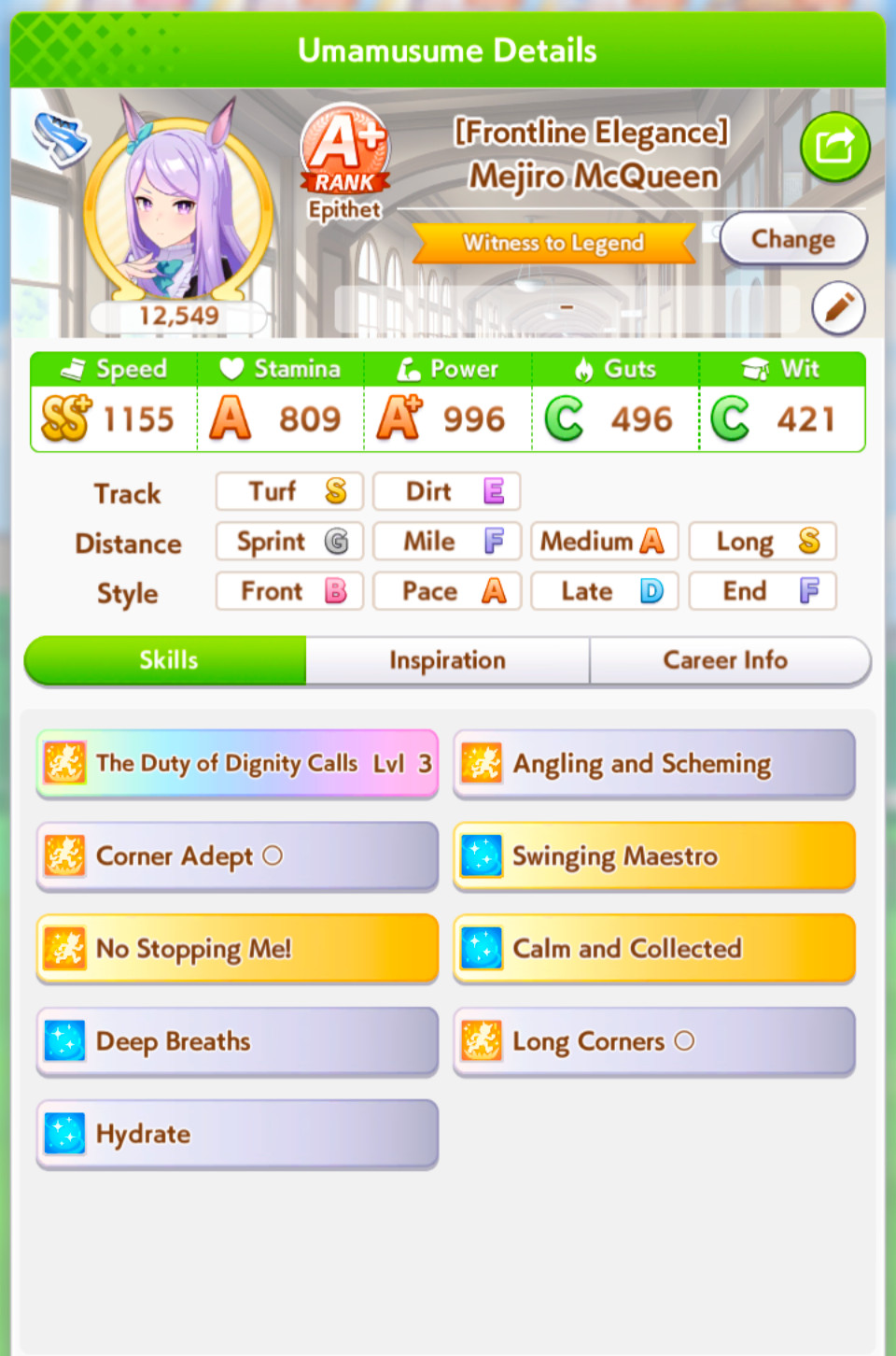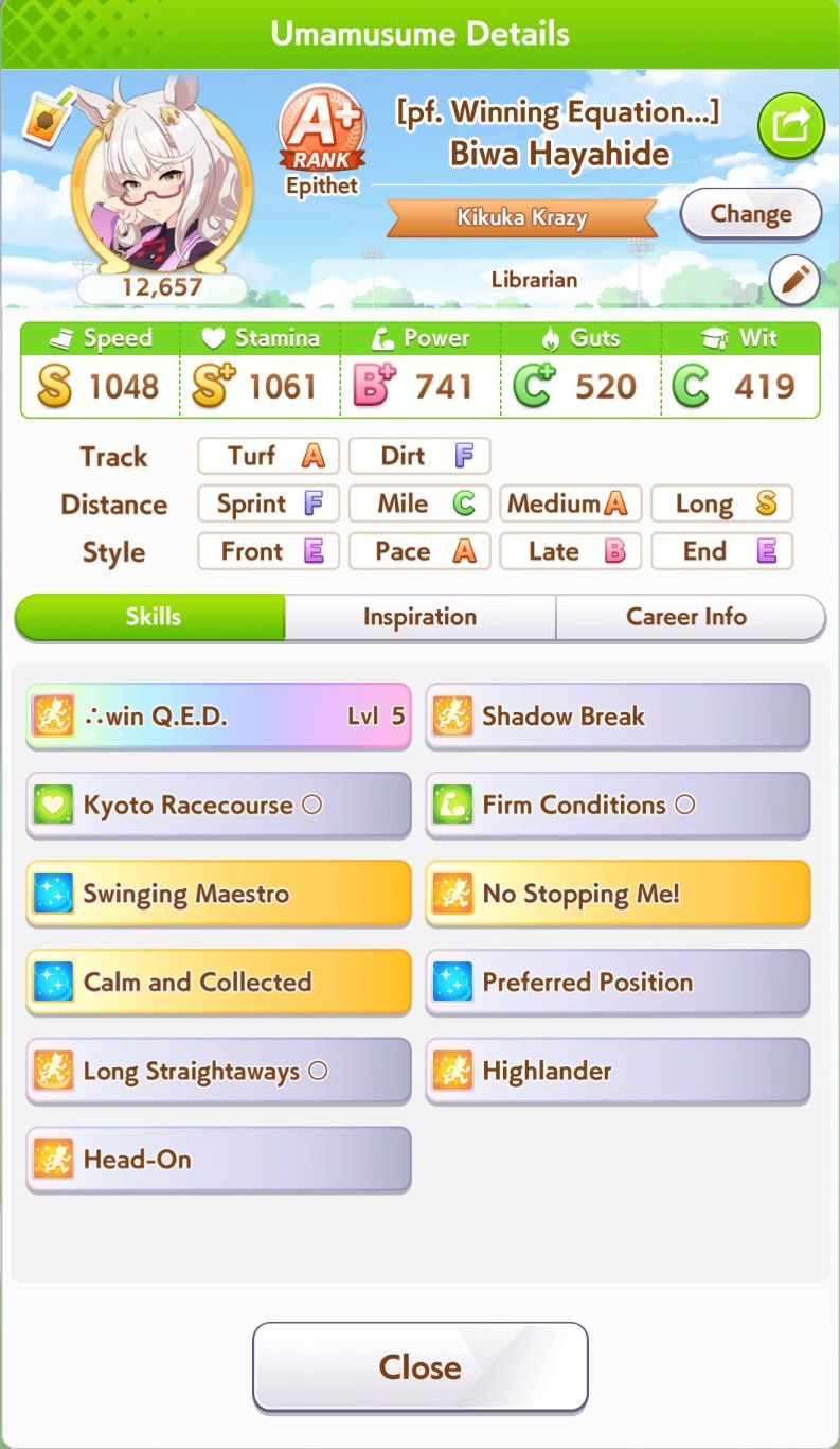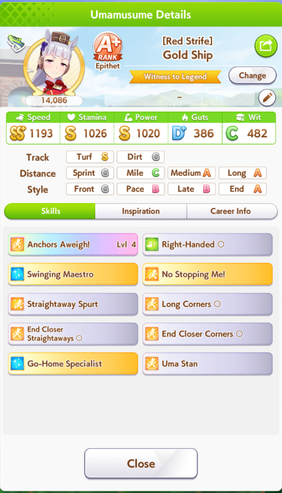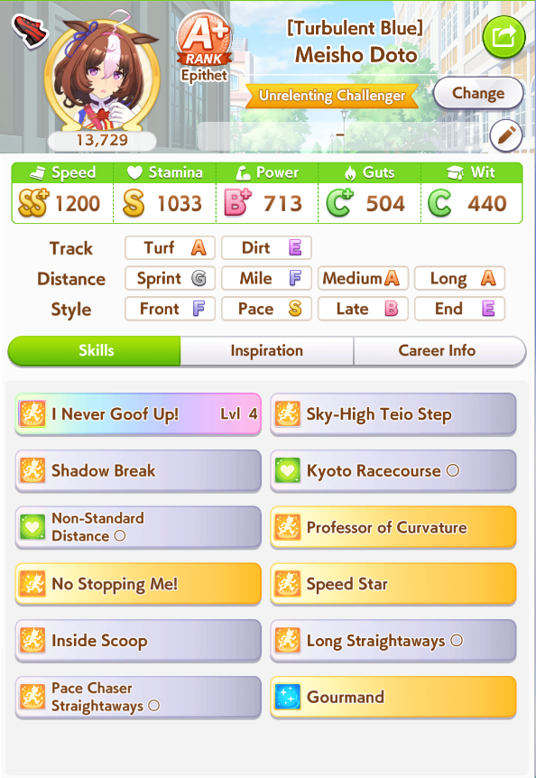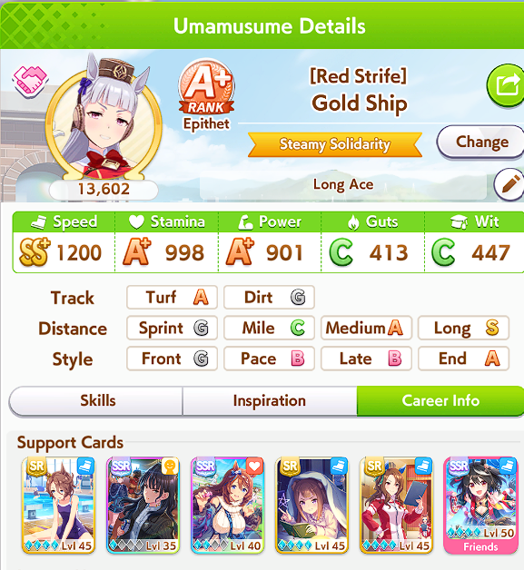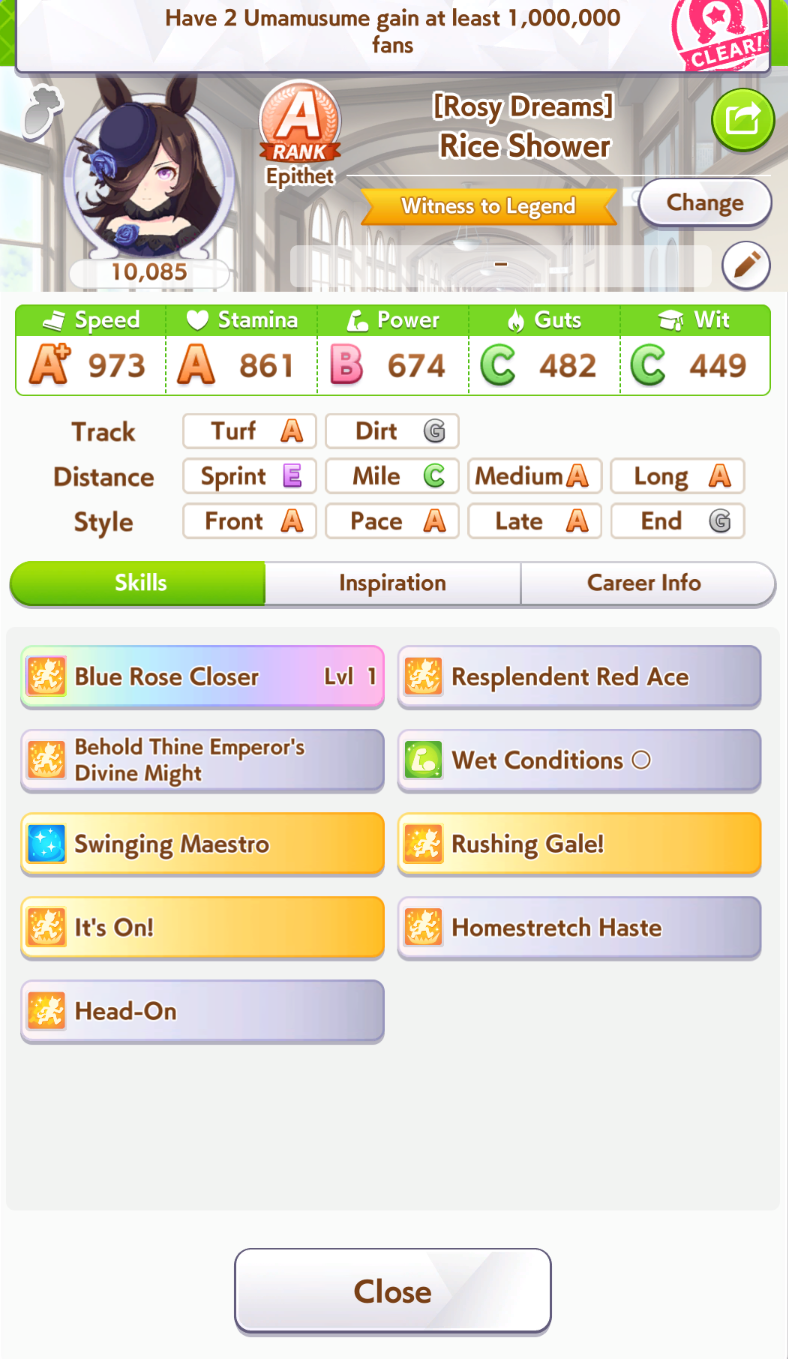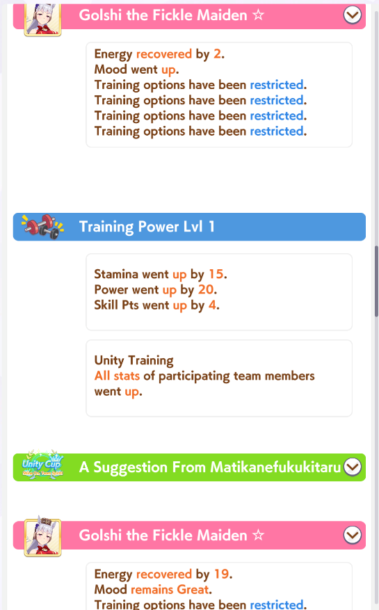 So dial back on the recovery then? I swear that was why my McQueen and Special Week were underperforming in the Gemini Cup - just swinging maestro and Gourmand were not enough. I swear Pace Chaser is a cursed running strat. I can never make pace chasers work outside of career… it’s always the late surgers and end closers doing the heavy lifting