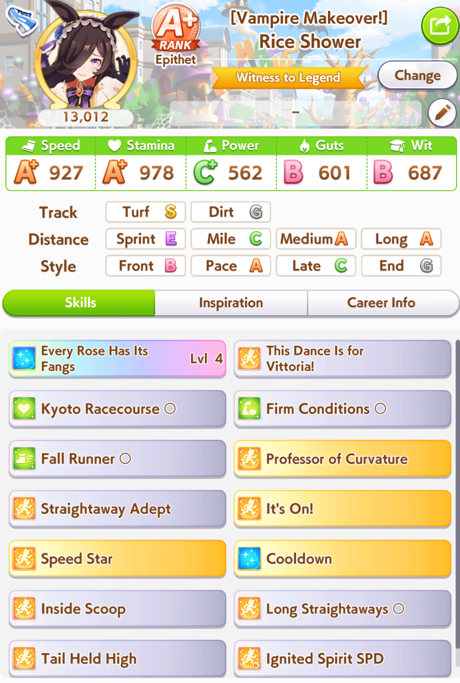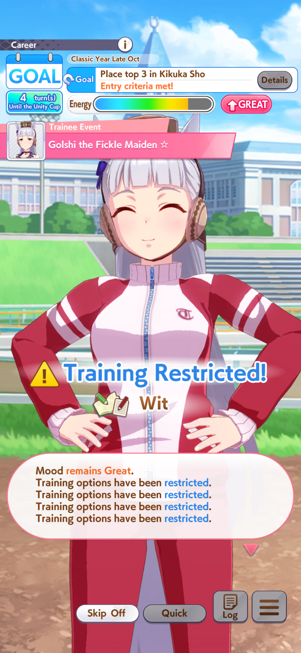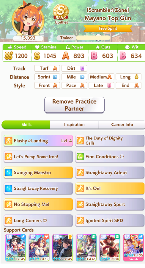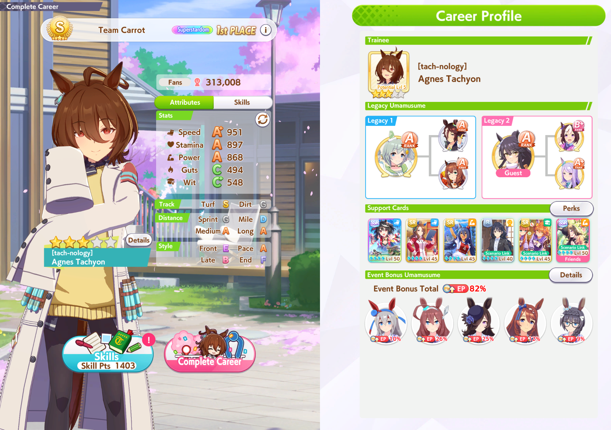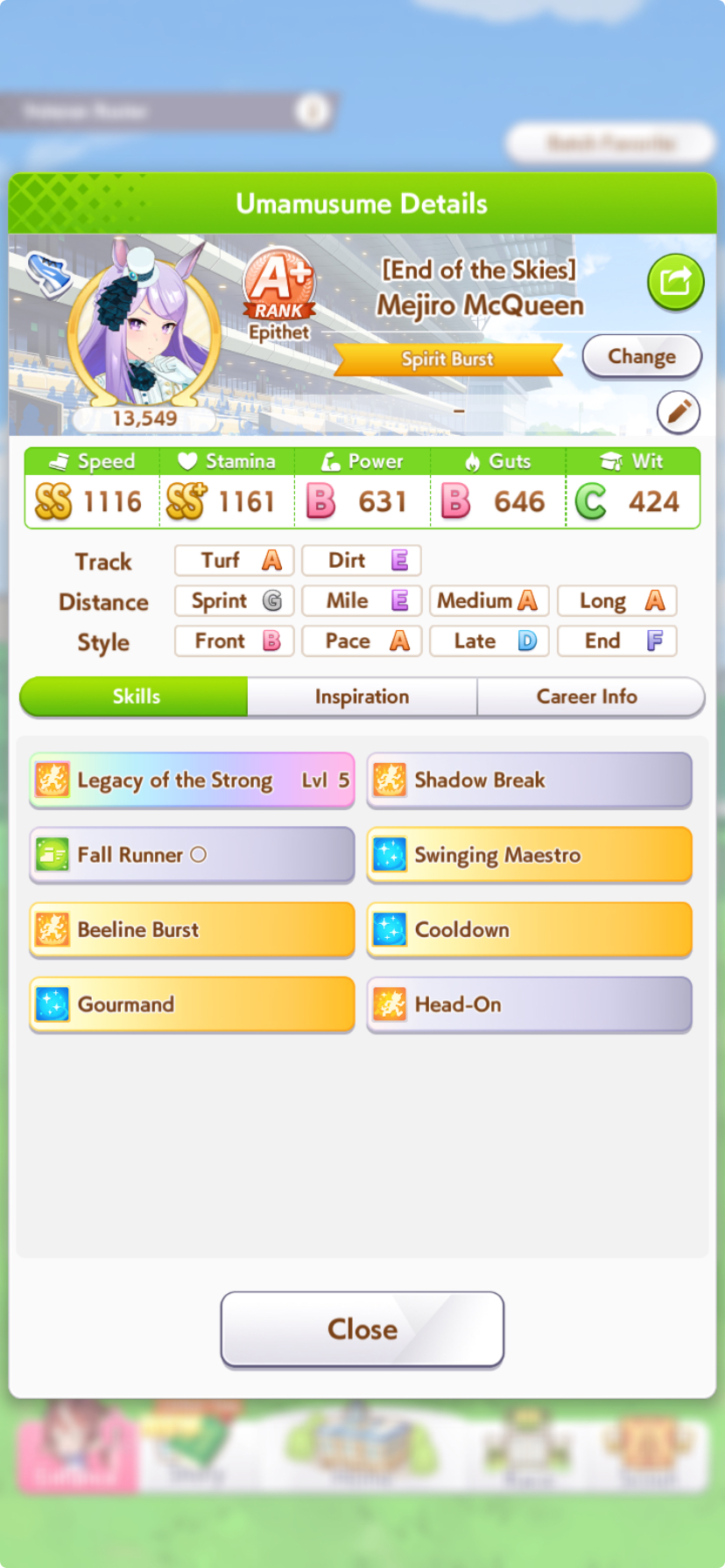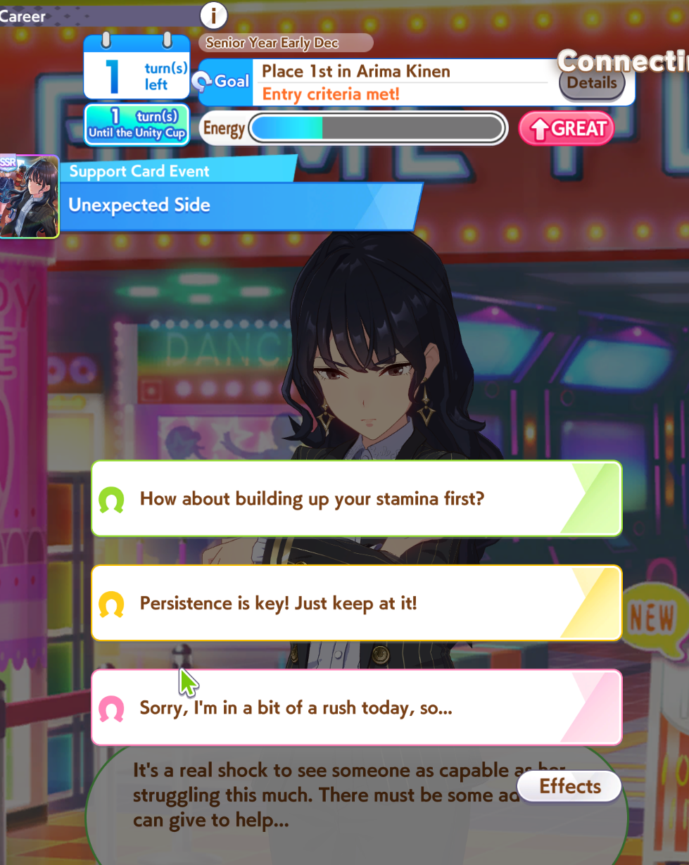 So dial back on the recovery then? I swear that was why my McQueen and Special Week were underperforming in the Gemini Cup - just swinging maestro and Gourmand were not enough. I swear Pace Chaser is a cursed running strat. I can never make pace chasers work outside of career… it’s always the late surgers and end closers doing the heavy lifting