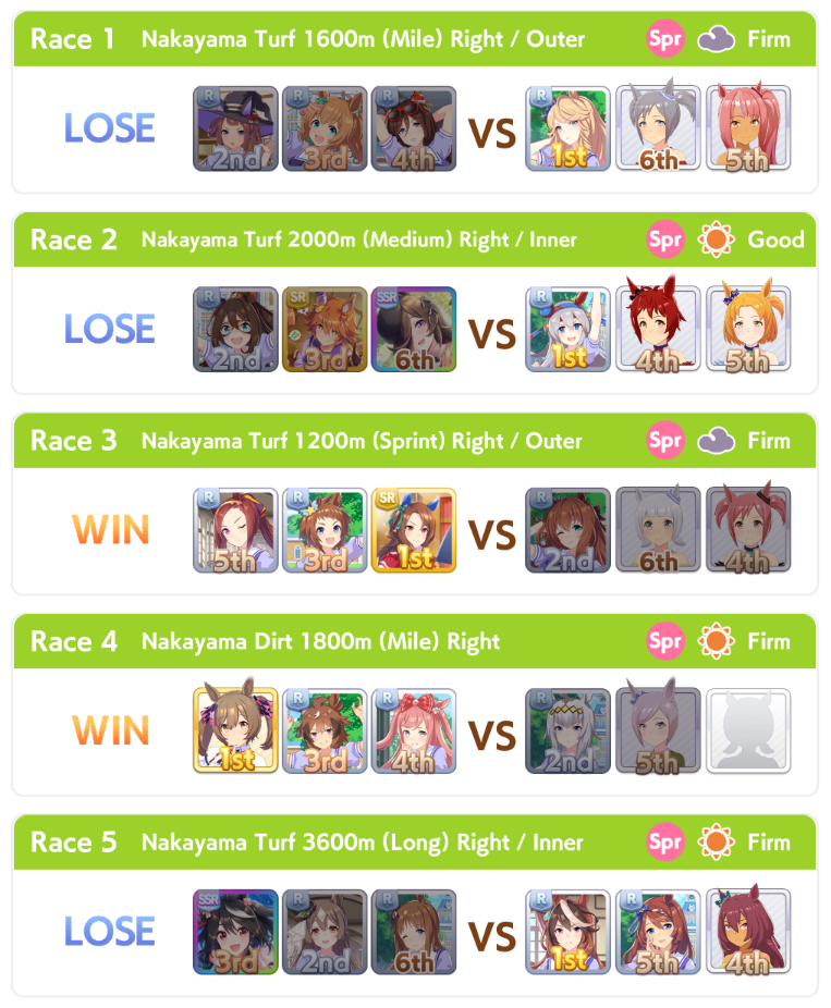 Also there are some distances like 2600 and 2500 which are just medium. And I always use parfait if I see a lot of umas of the opponent in bad mood so they are in great when it matters.