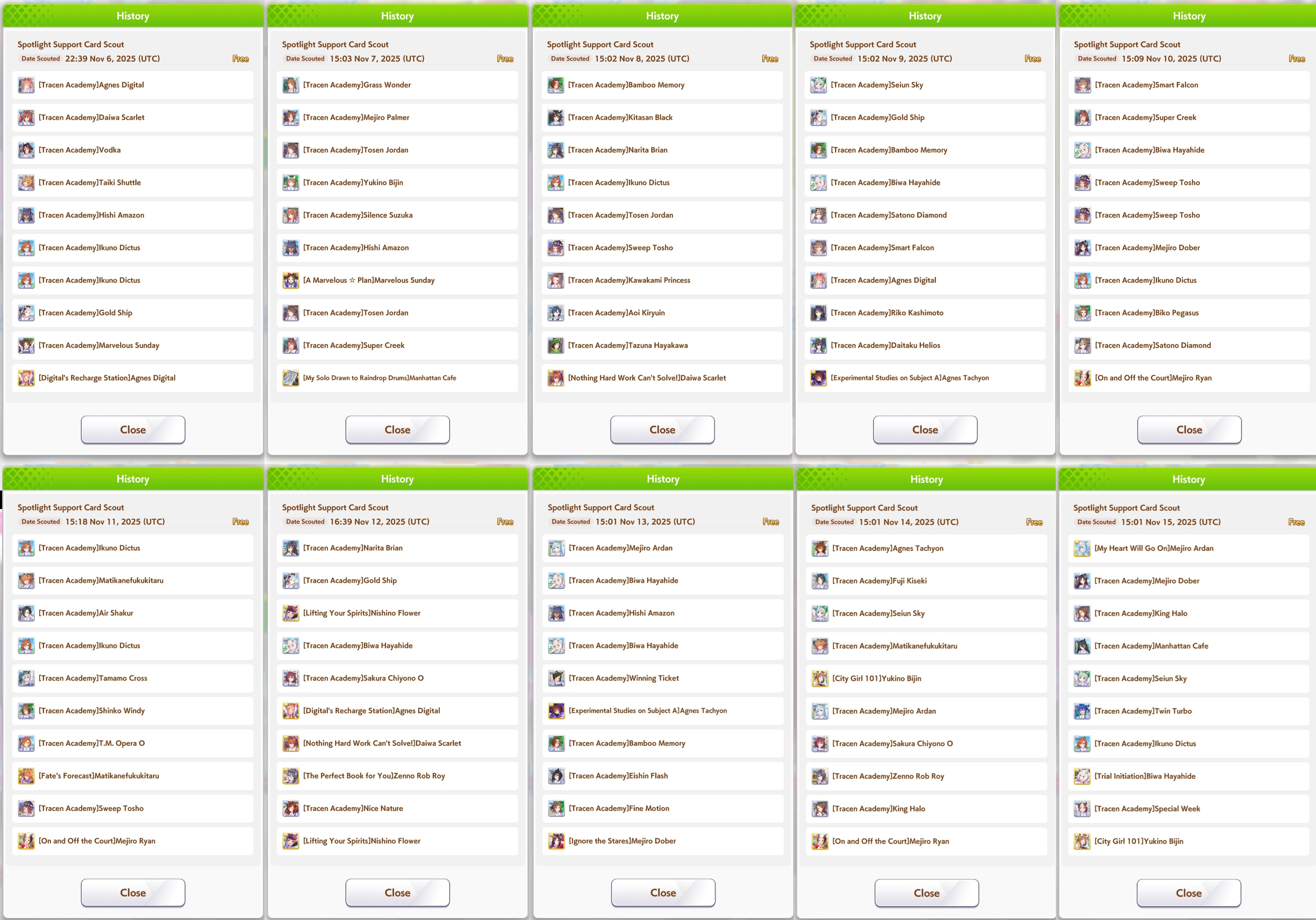 Current Rate Up: Rice Shower (3* Alt), Super Creek (3* Alt), Tamamo Cross (SSR), Zenno Rob Roy (SSR)