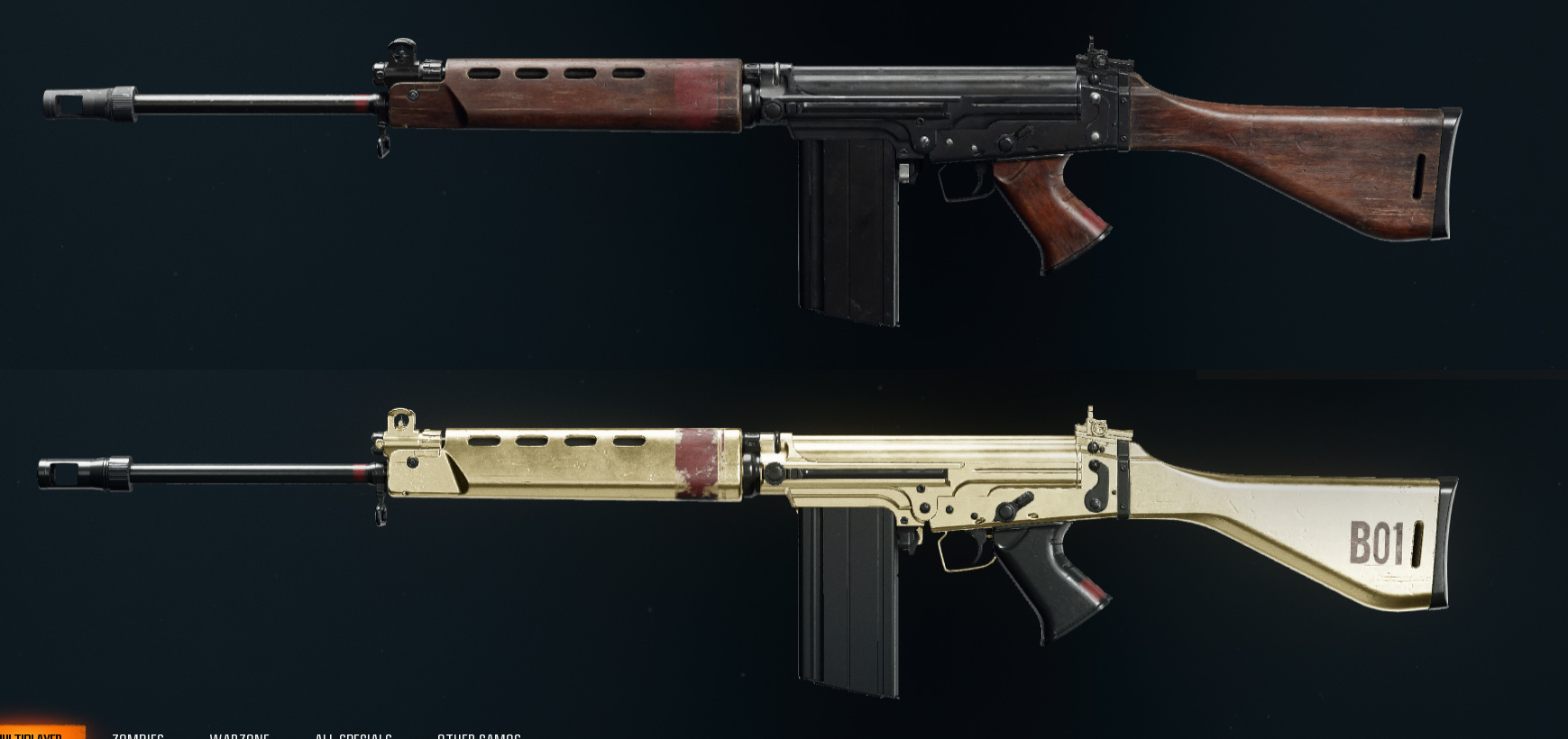 Applying a camo to the Old Timer blueprint will reveal a secret message. I can't tell if this is referencing BO1 since it's the first Treyarch game where the Fal appeared, also with a wooden stock and barrel.