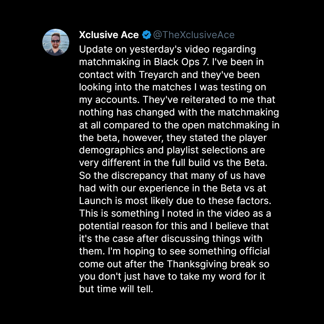 Uh... it's looked to me for years like the overwhelming consensus was that SBMM made games "too sweaty" by matching you with players of similar skill levels. In my COD experience since Modern Warfare, there has been a whole lot of in-between, ESPECIALLY in Free-for-all. In BO6 90% of my FFA games were decently competitive, in BO7 it's legit more like 25%.