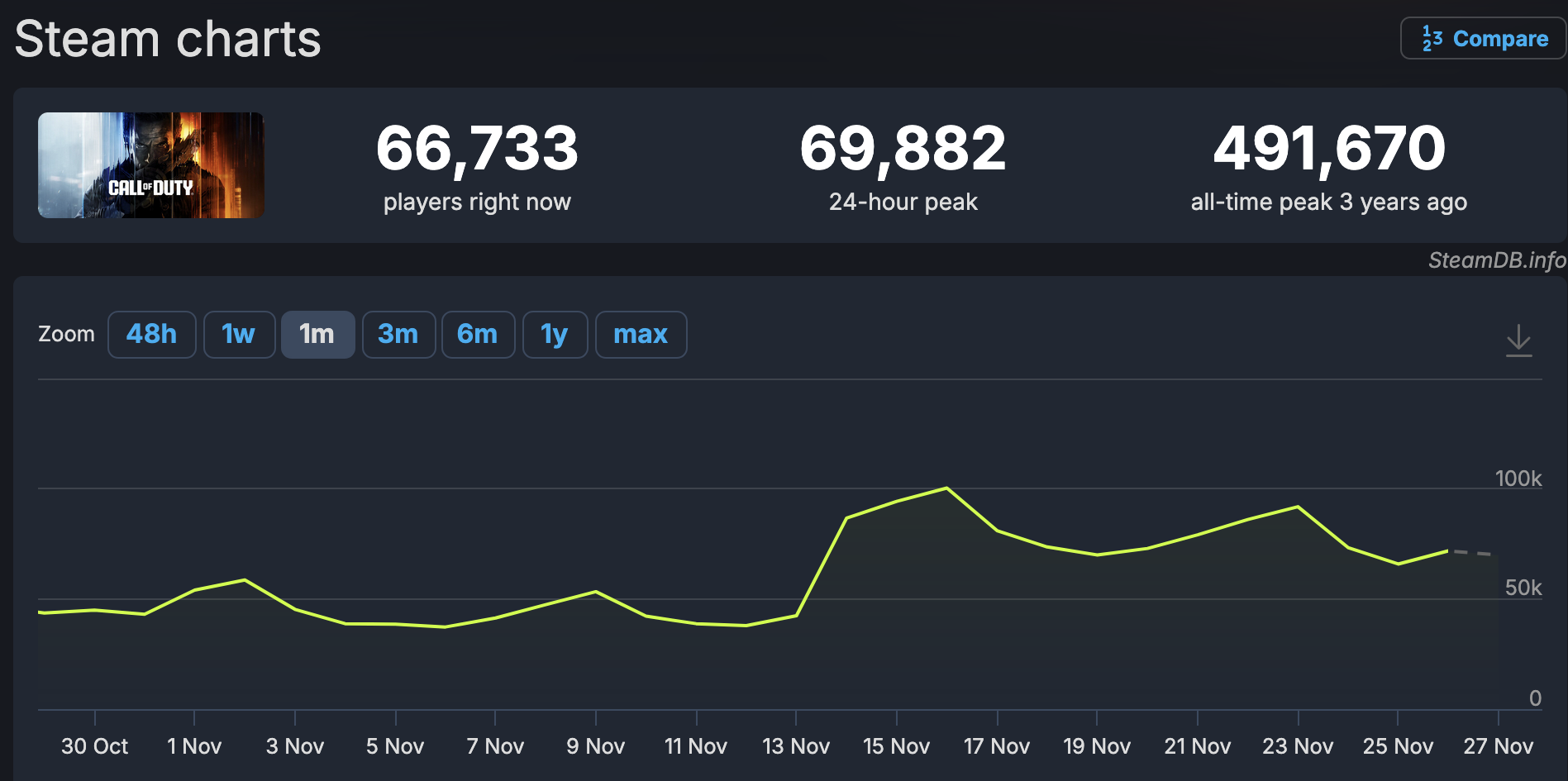Call of Duty has already slipped out of the number 1 slot on PS two weeks after release.