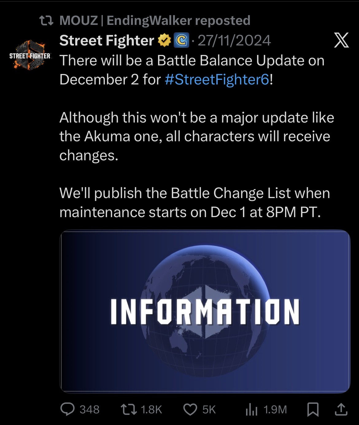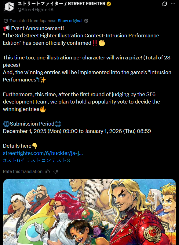 https://x.com/StreetFighter/status/1994224800034611433They call SF6 0070 Patches0 Costumes 7 Art Contests