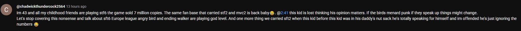 >>548076216it's less embarassing than someone's son playing sf6 & defending it on their free time