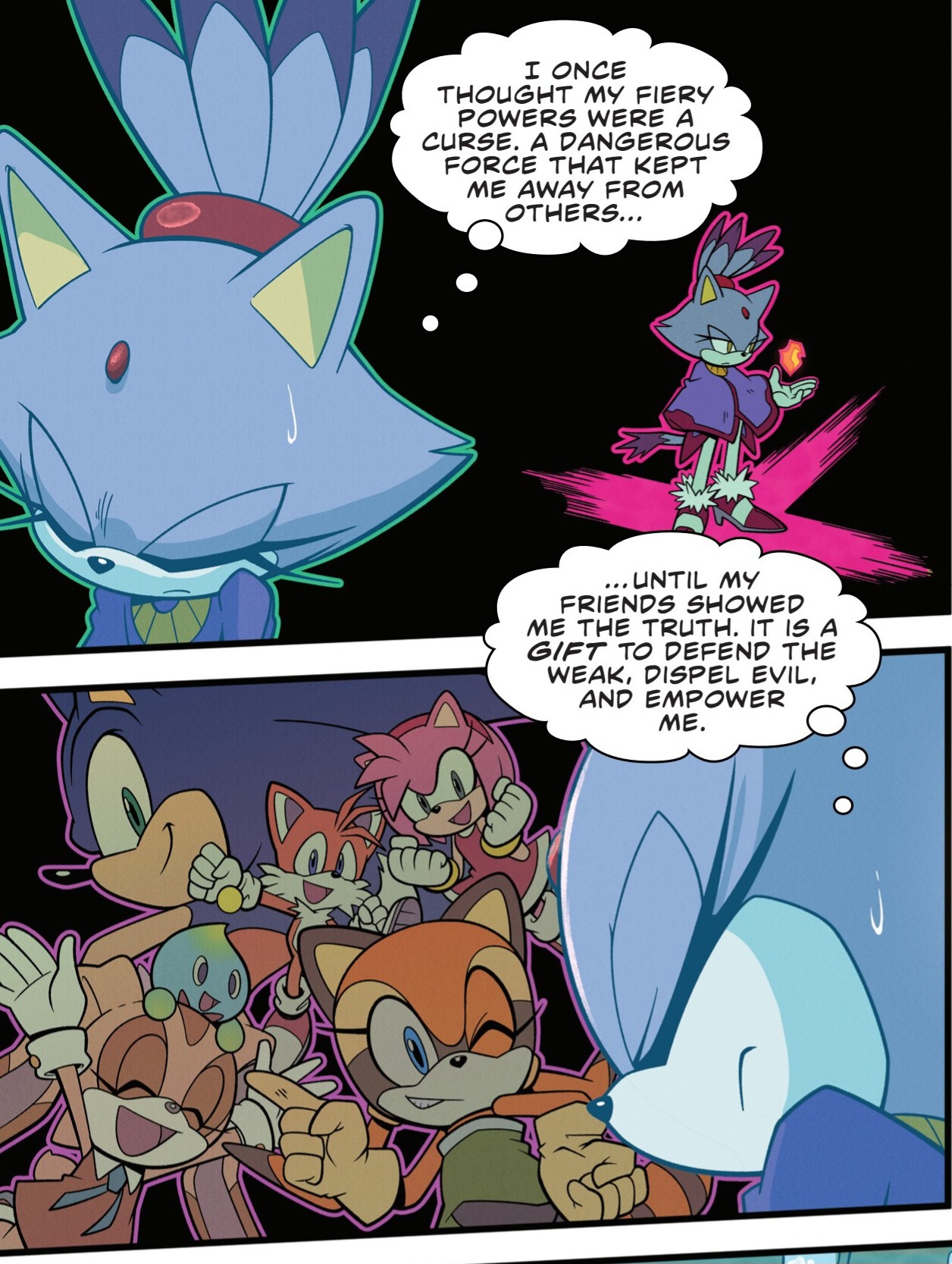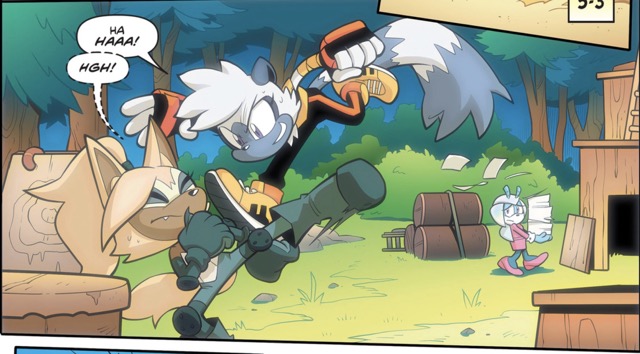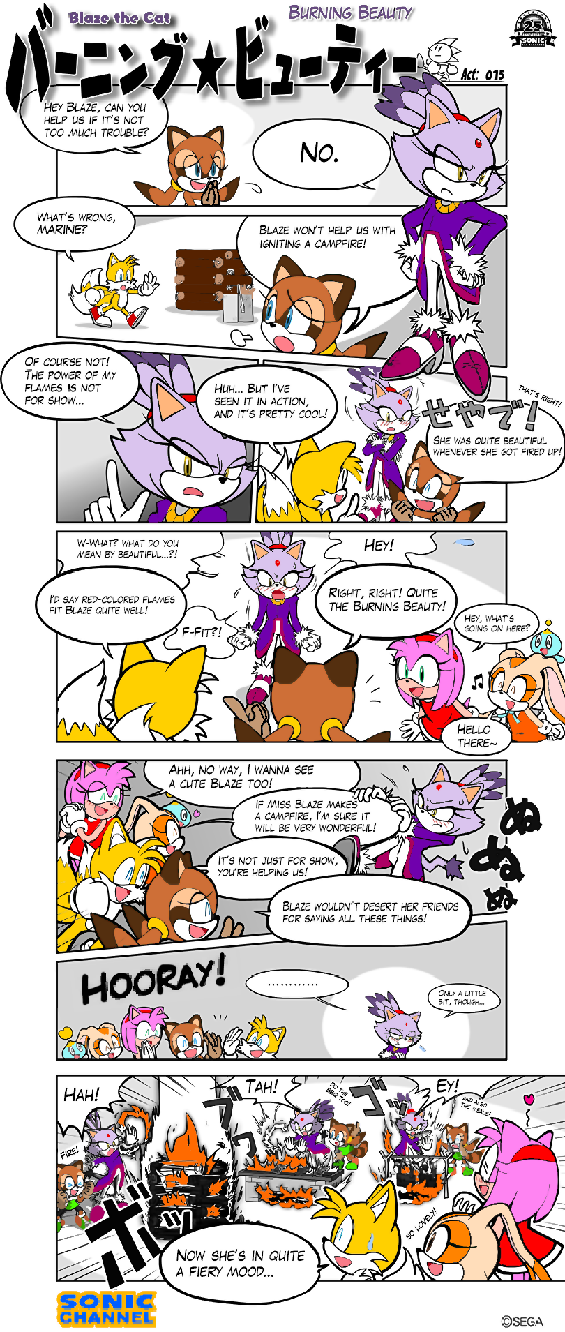 Kind of like how after like 1 or 2 panels of pushing Amy and the other convince Blaze to use her powers to grill fish for them lmao