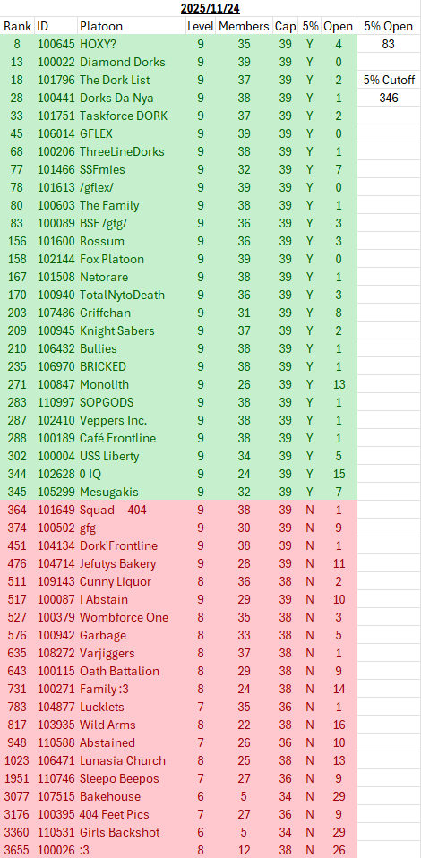 NETORARE is looking to recruit (you)!We are laidback with no real requirements to join.Consistently hitting top 2-3%! Auto is acceptable!Enjoy max rewards, and every single doll at v6 while being a part of the most tight-knit platoon in the general!>Danchou UID: 879419>Deputy UIDs: 1102985 / 18261>Platoon ID: 101508>Darkwinter