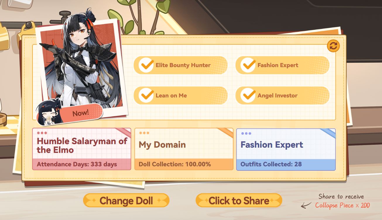 Man I came back to pull for the ump sisters but the game feels like if the UI was designed by EA. So many menus to reach the different modes or shit you can do daily, even if its not the basic dailies... it needs a lot of simplification, that was overwhelming.That said, can I V6 leva with 70.000 Collapse pieces and 60 tickets? I forgot how this game economy worked