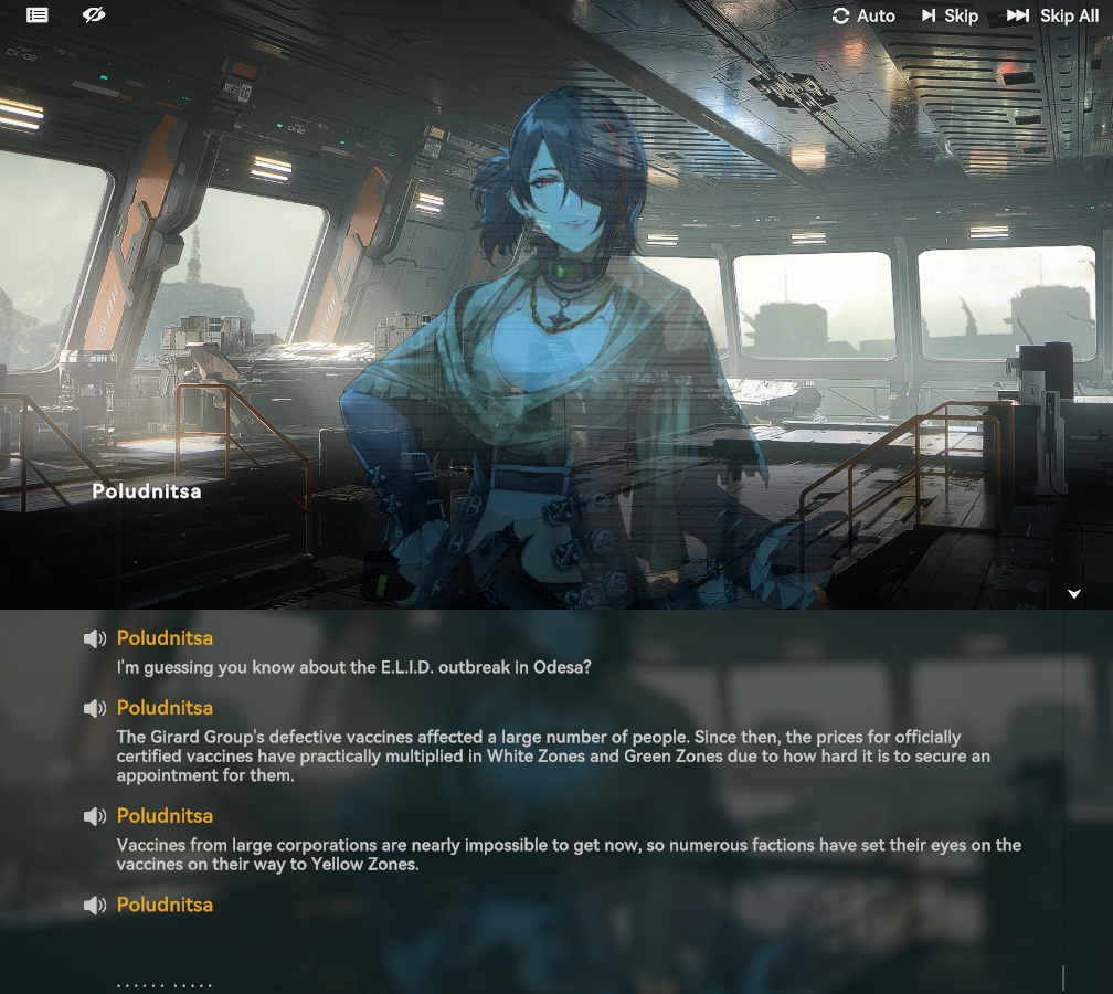 I think there are some untranslated poludnitsa's voicelines? i'm not sure, i might be retarded, when she finished talking the previous line, i clicked as usual and she continued with the next line but the text was blank lmao