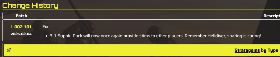 Underbarrel Edition>Previous>>548039742>WHAT IS HELLDIVERS 2?HELLDIVERS 2 is a 2024 crossplay, co-op, squad-based, PvE 3rd person shooter for PC, PS5 and XBox Series X/S where players fight against hordes of alien insects, robots and squids to Spread Democracy™. Players wage war on contested planets, each with a different biome, completing as many objectives as possible in a procedurally generated level while constrained by a time limit. With enough successful missions, a planet can be defended or liberated, and the player base must combine their efforts as much as possible to Liberate™ the galaxy.https://store.steampowered.com/app/553850/HELLDIVERS_2/https://www.playstation.com/en-us/games/helldivers-2/https://www.xbox.com/en-us/games/store/helldivers-2/9mx9wn9dfpgt>WHAT ABOUT THE FIRST HELLDIVERS GAME?Released in 2015 for PC, PS3/4 and PS Vita, the original HELLDIVERS is a shared screen top-down shooter in the same setting. Its mechanics were based primarily on Arrowhead's first game, Magicka.https://store.steampowered.com/app/394510/HELLDIVERS_Dive_Harder_Edition/https://www.playstation.com/en-us/games/helldivers/>LOBBY HOSTINGhttps://files.catbox.moe/83ixkr.png>MODDINGhttps://files.catbox.moe/c81ogo.png>INFORMATION RESOURCEShttps://helldivers.wiki.gg/https://helldiverscompanion.com/https://democracy-hub.nethttps://helldive.live>MAJOR NEWSOct 23 Patch 4.1.0 https://www.youtube.com/watch?v=OBW4NumlYHoNov 06 Dev Team Interview 1 https://store.steampowered.com/news/app/553850/view/571520933631623429Dec 02 Python Commandos https://www.youtube.com/watch?v=QQPp9ZCgrP8>LATEST PATCHESOct 23 1.004.100 https://store.steampowered.com/news/app/553850/view/538868565209514366Nov 04 1.004.101 https://store.steampowered.com/news/app/553850/view/687488077158942133Nov 18 1.004.102 https://store.steampowered.com/news/app/553850/view/600795216679535663