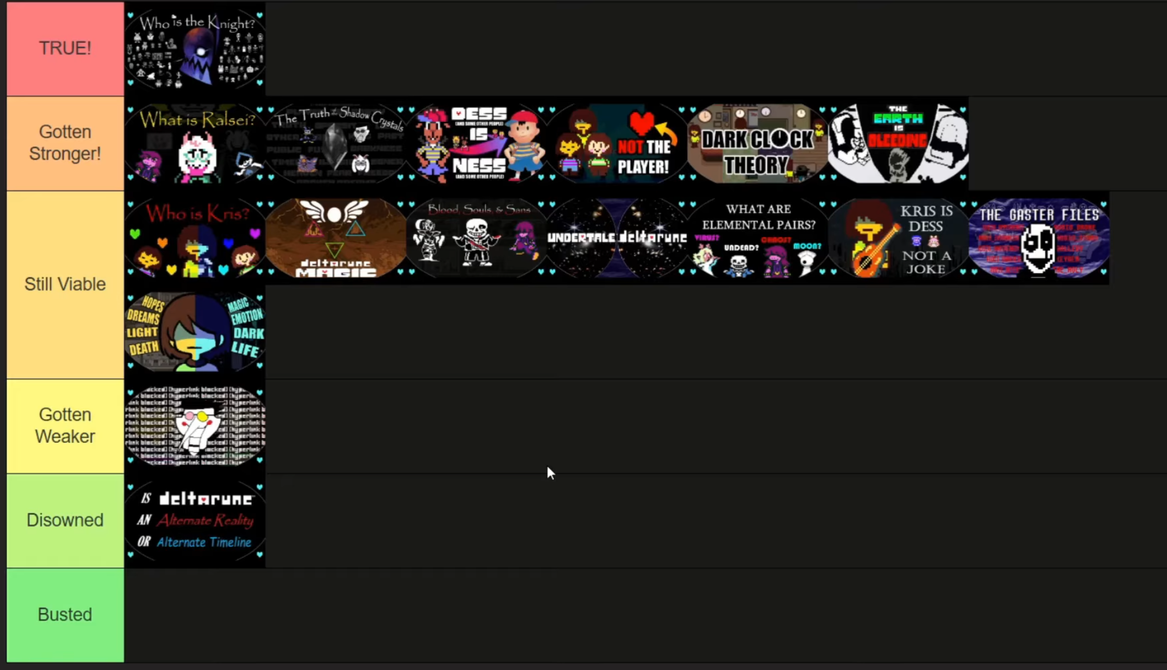 >>548203064Yes, that's exactly it. The others are random shit like Ralsei being dead Asriel, the player not existing (not CoL but I agree with Jaru here) and Kris being Frisk.