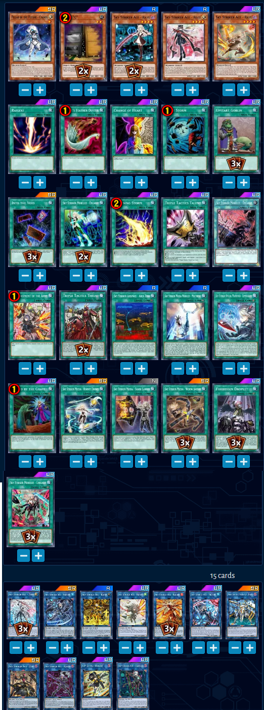 >10 cards left in deck, 3 monsters left in extra deck, the graveyard is just link monsters and non sky striker spells