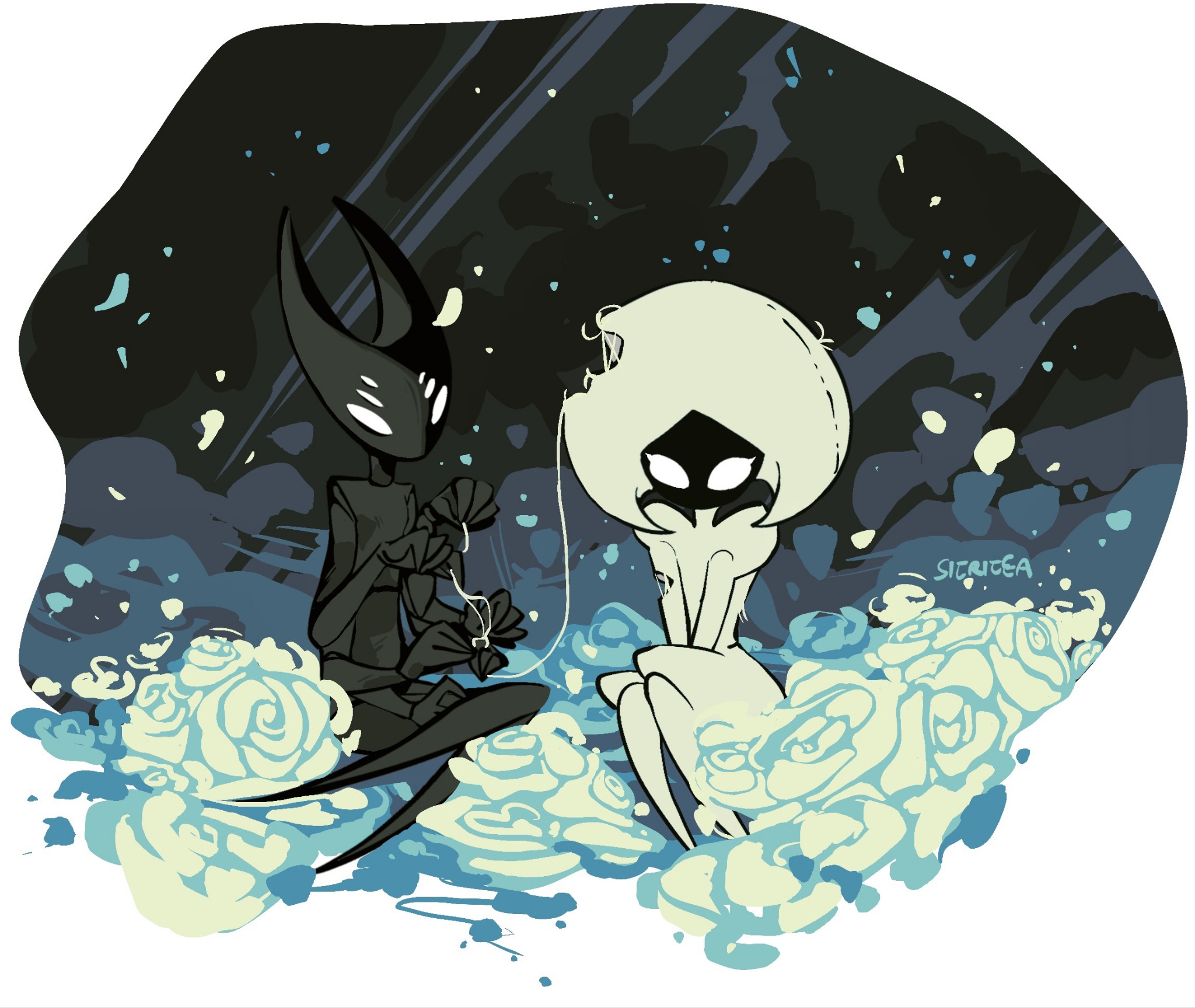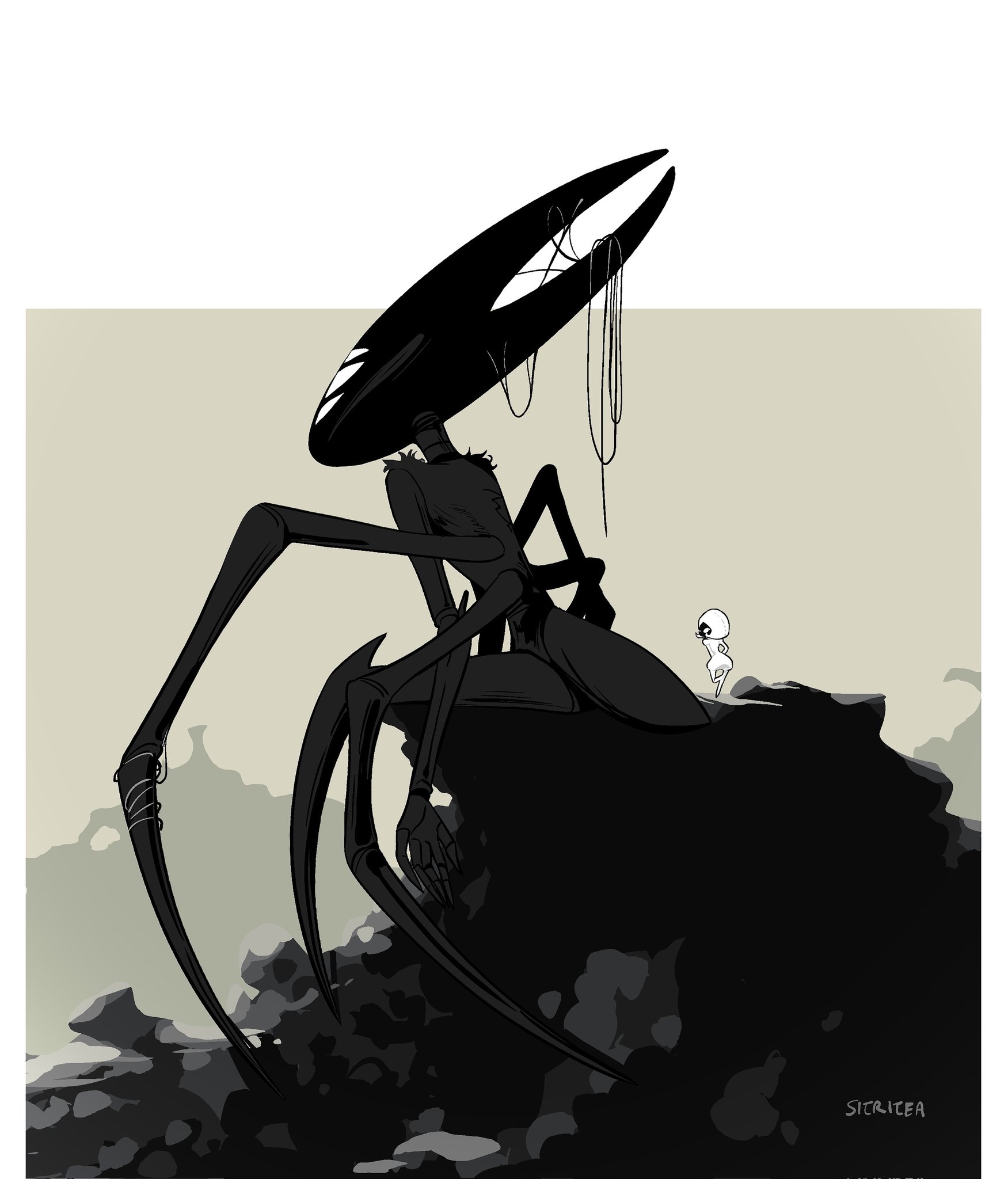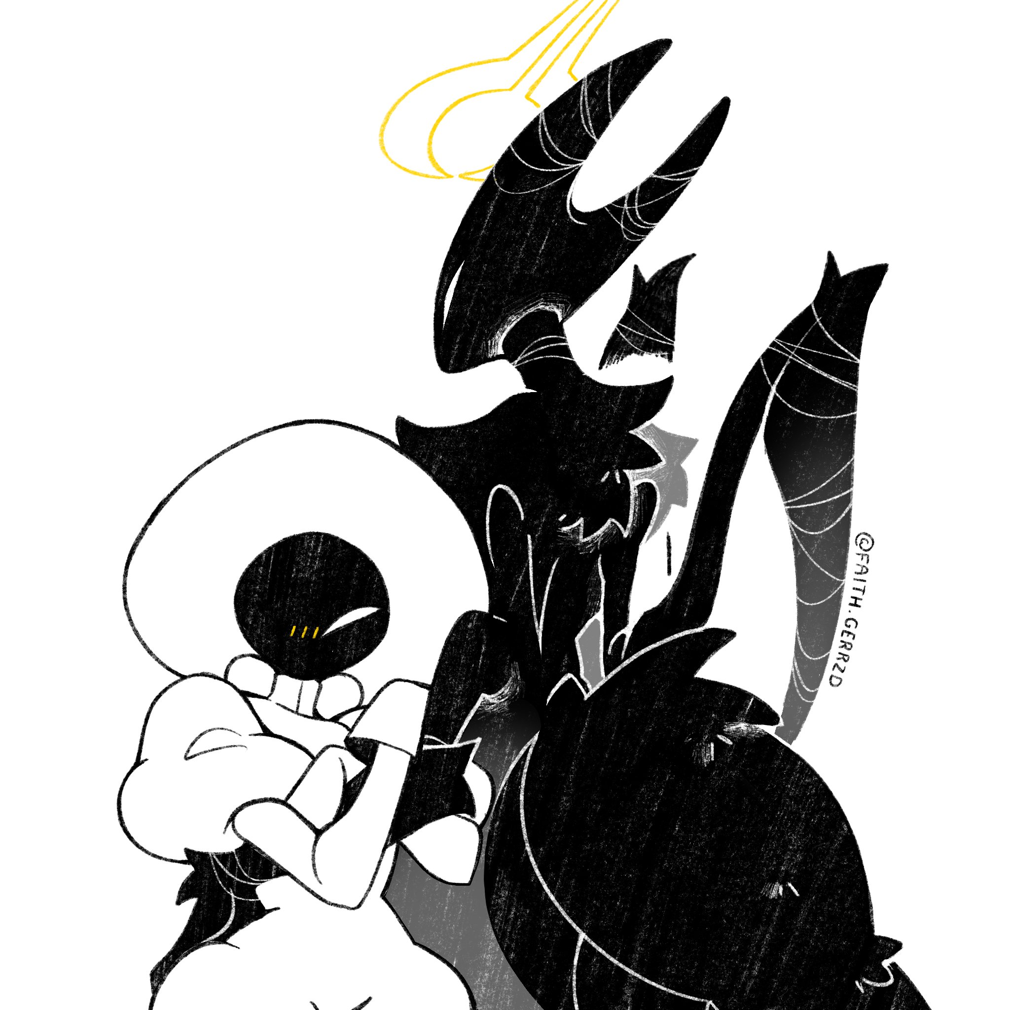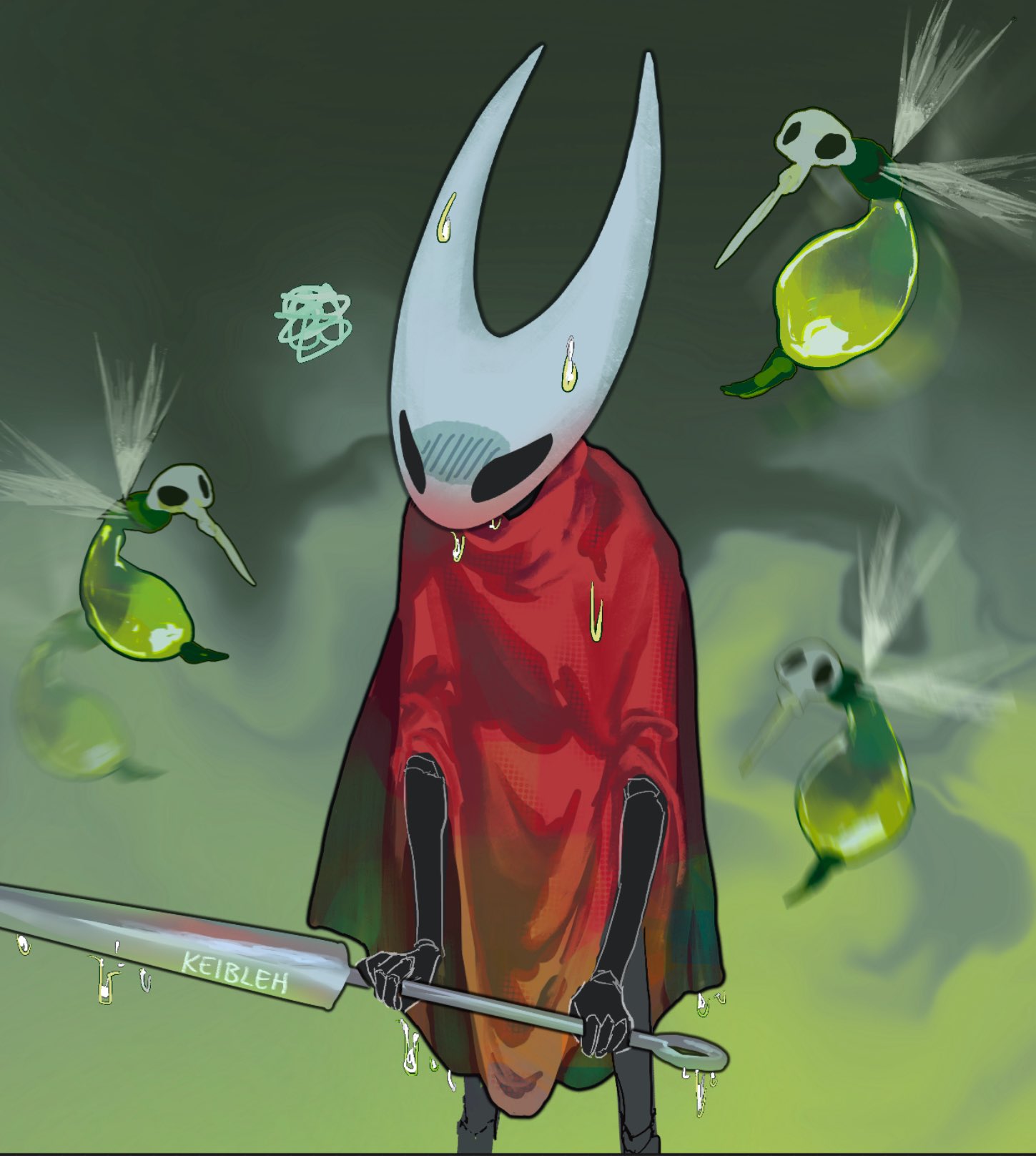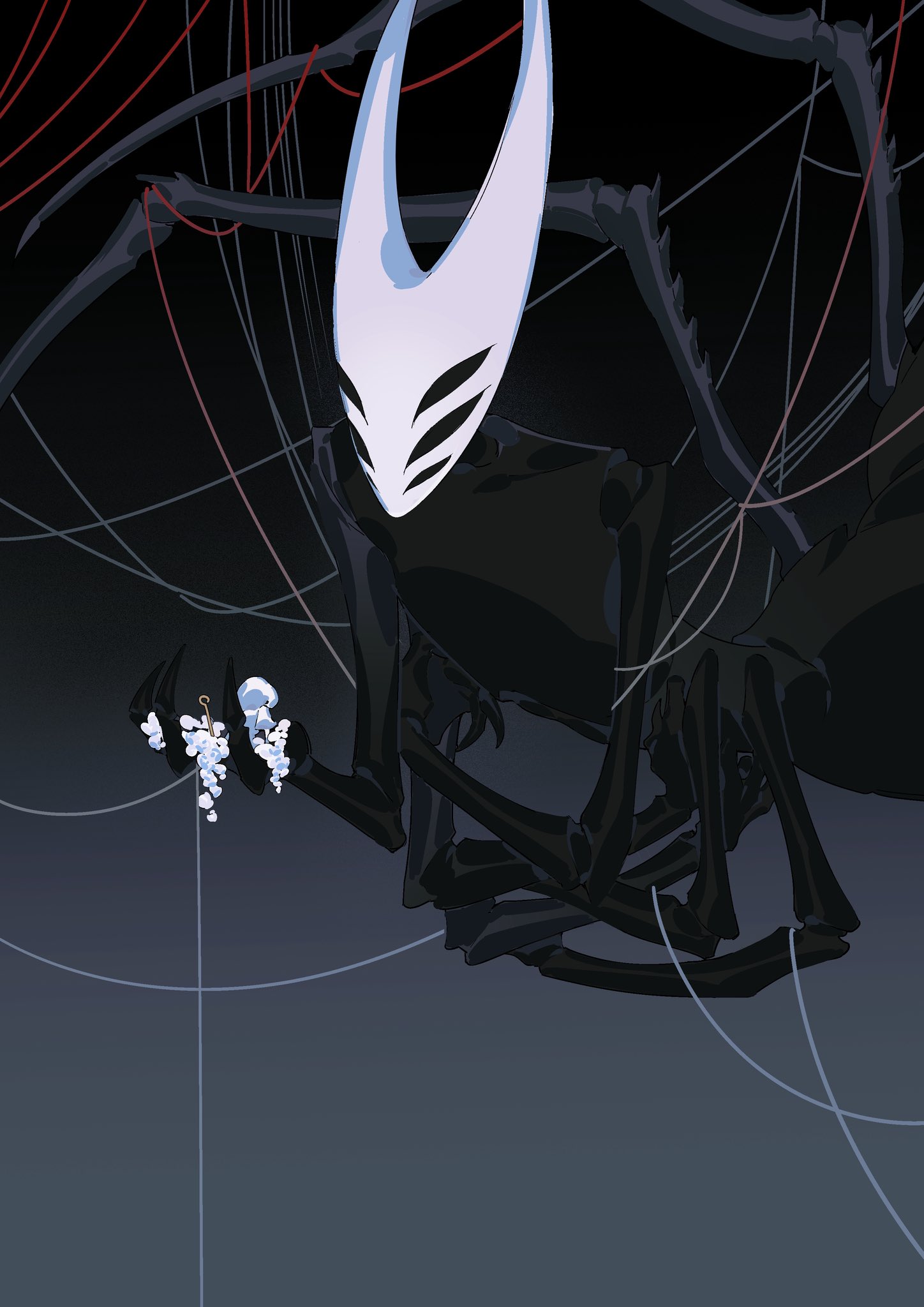 >>548311709I can’t get enough of how unsettling Weaver Queen Hornet’s mask is in this fanart, there’s something subtle in the way the six eyes are arranged that does it.