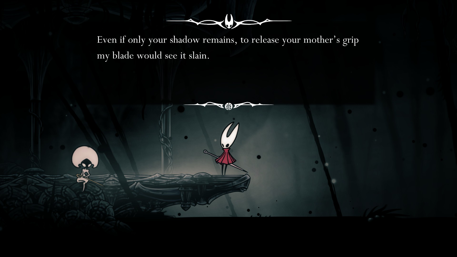 >>548261646>I had the idea of "at some point TC will clarify everything, so I guess I'll just wait 'til then"Literally was never going to happen. They didn't do it for Hollow Knight. From Software has never done it for any of their games, which team cherry are heavily inspired by. Doesn't mean we can figure things out for ourselves and also see things in their art they may not have intended