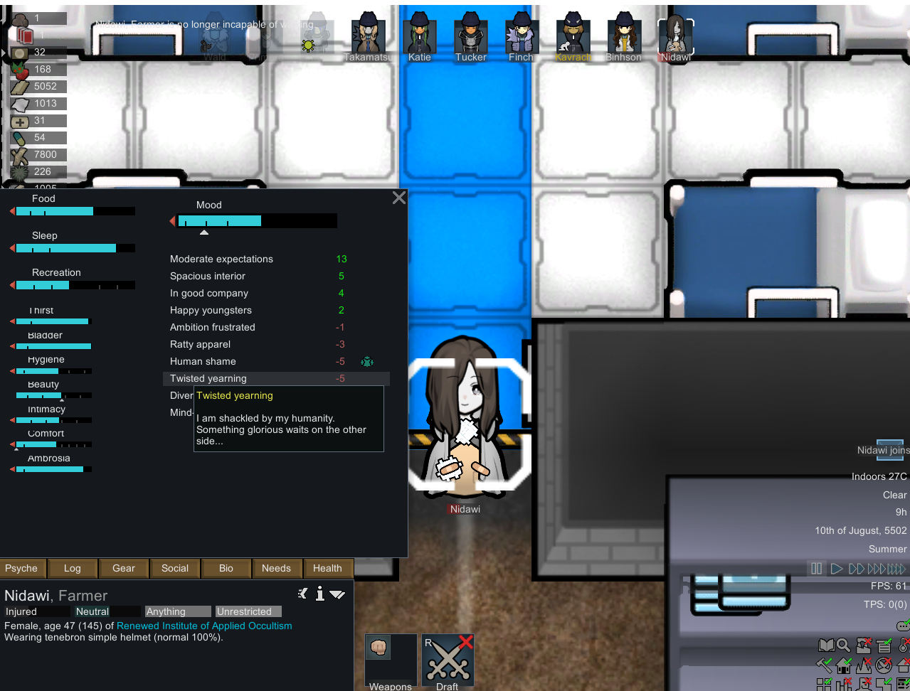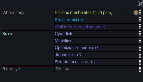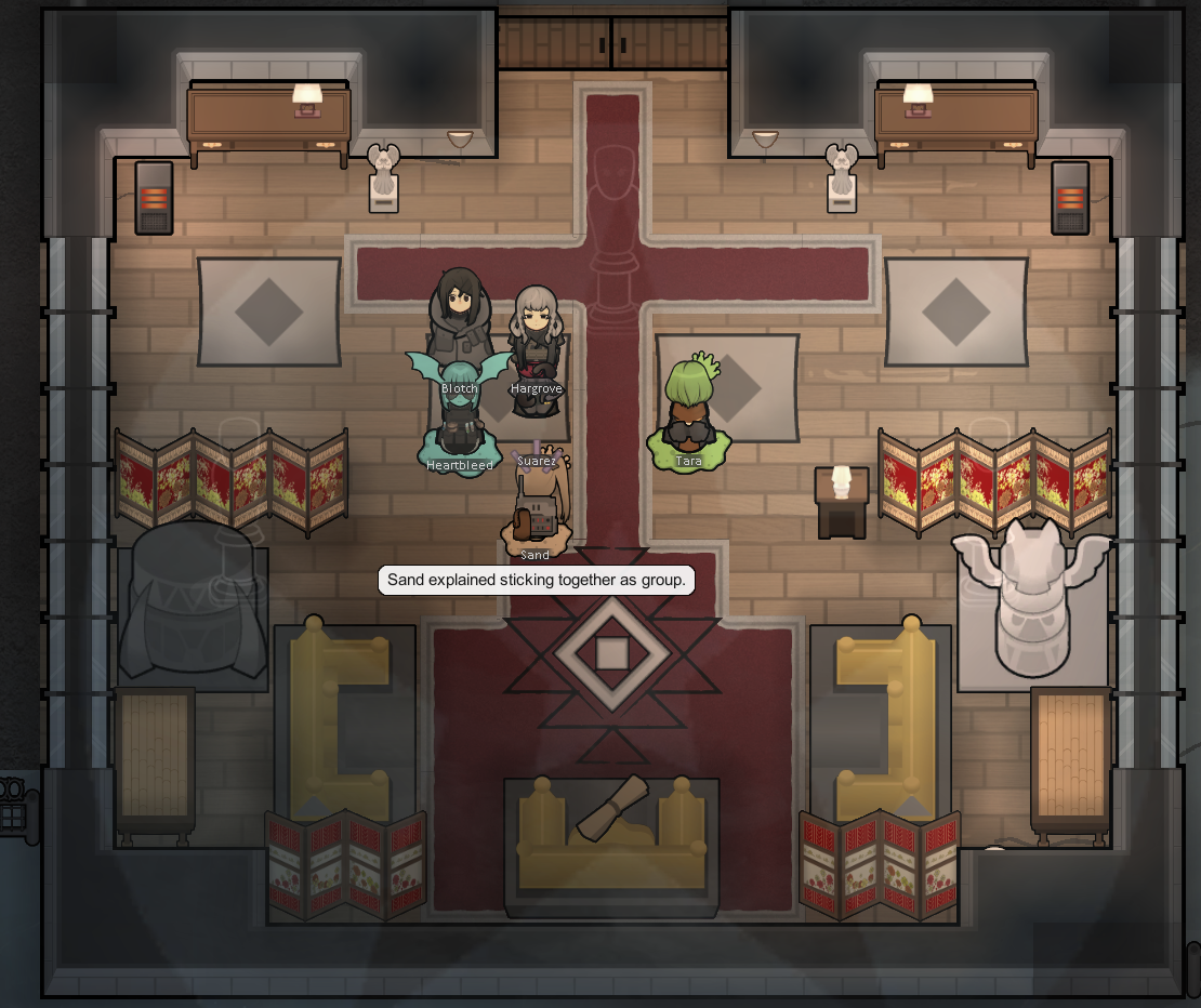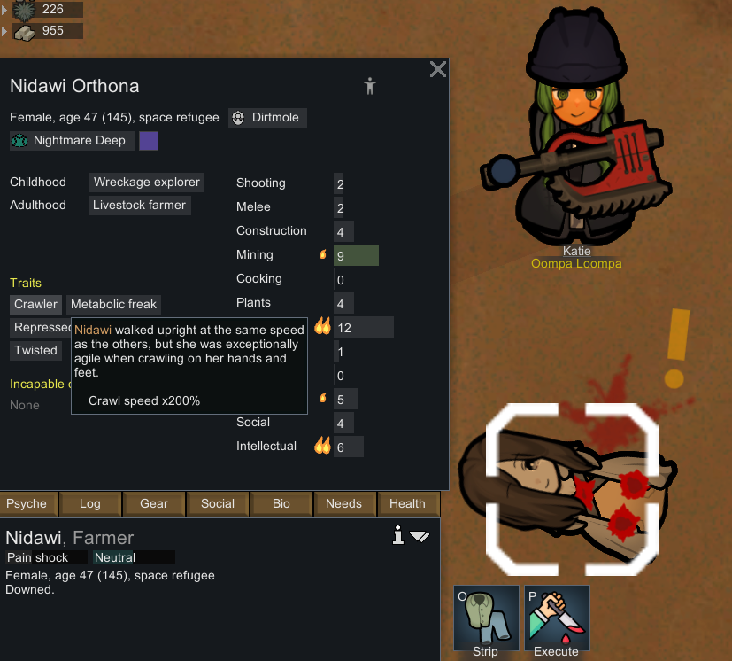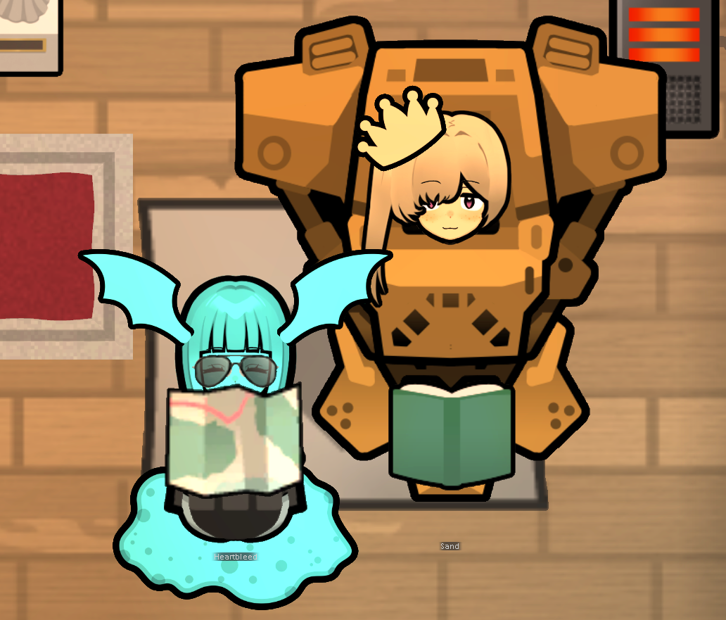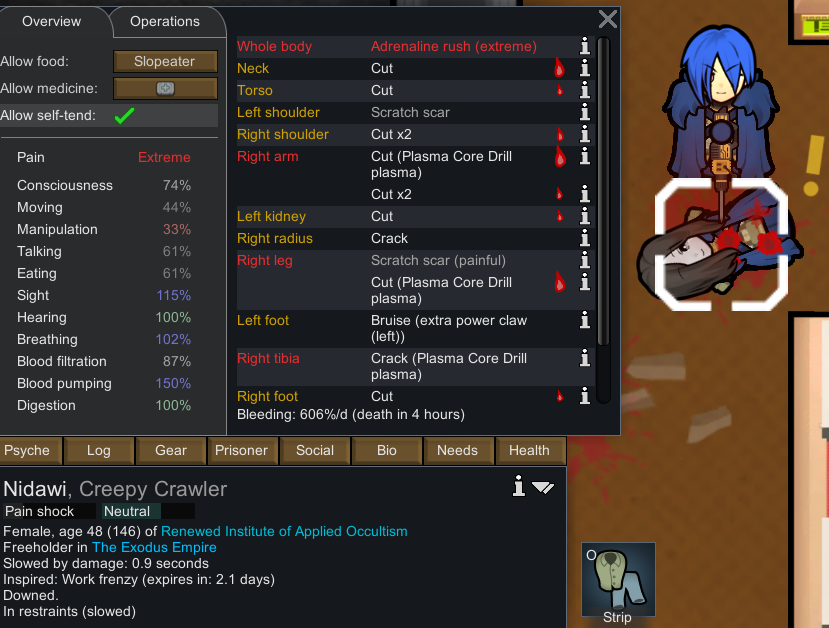 My two starting characters of the only run that I actually saw to the end, Luna couldn't pick just one struggle, as she was already a psychically enhanced melee battle maniac, but after she was voidtouched and Sanguophaged, she became a one Maru army.