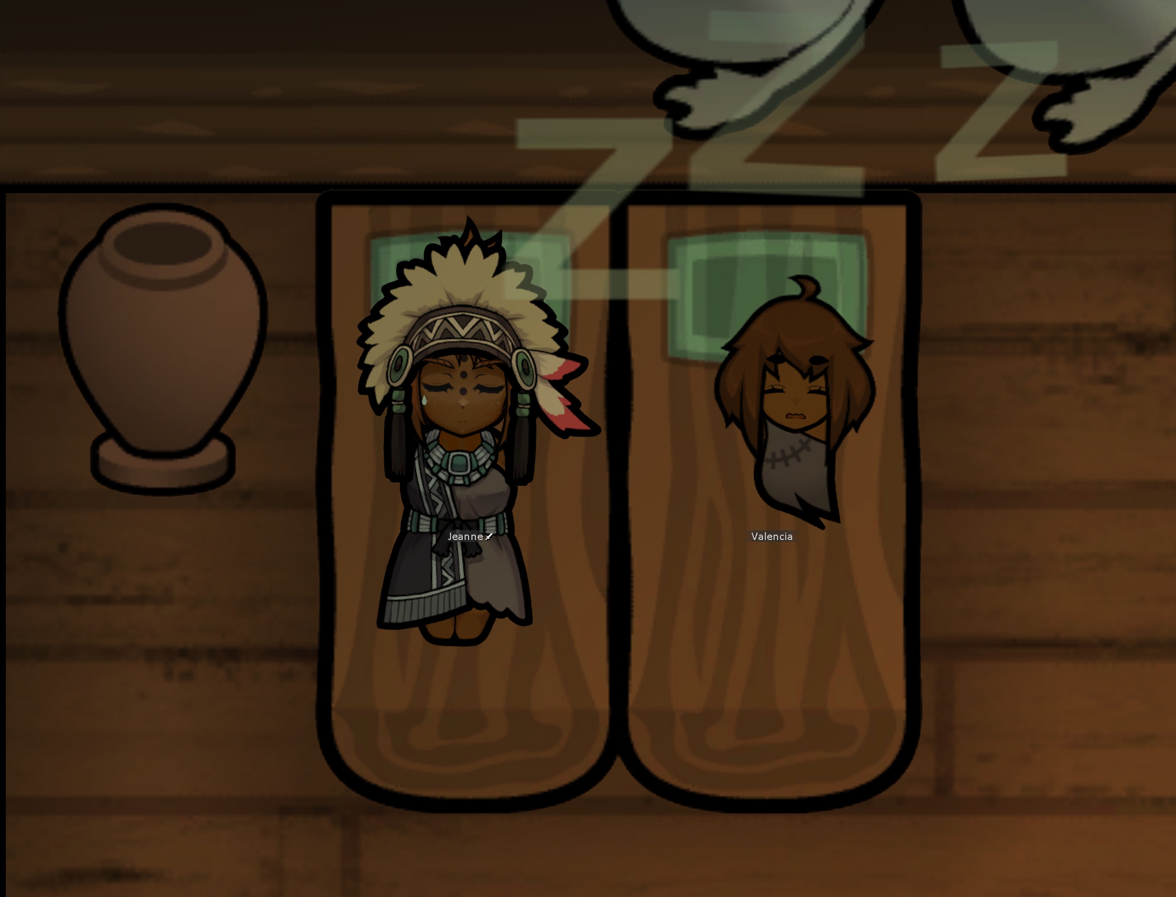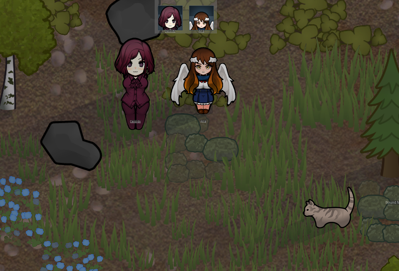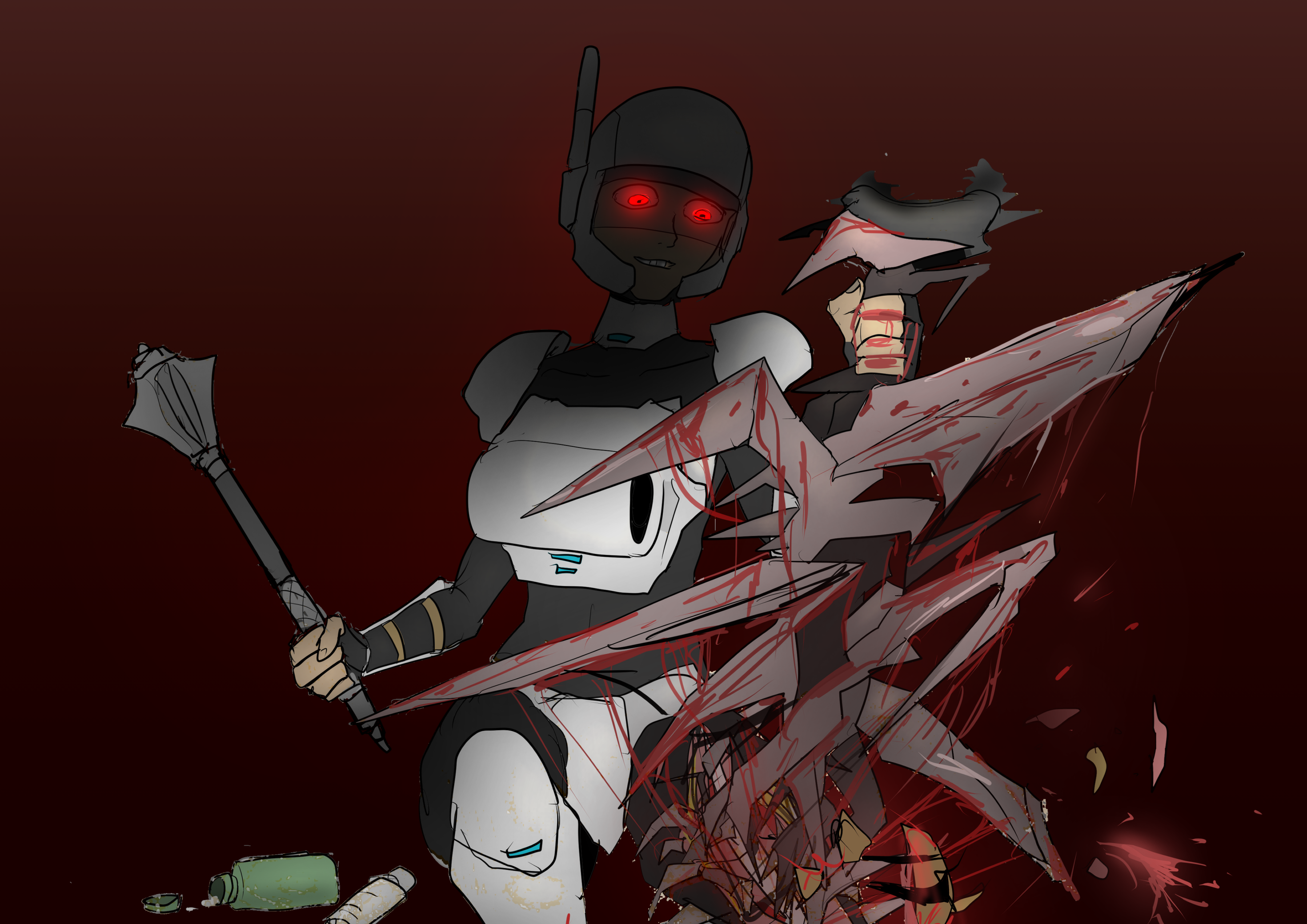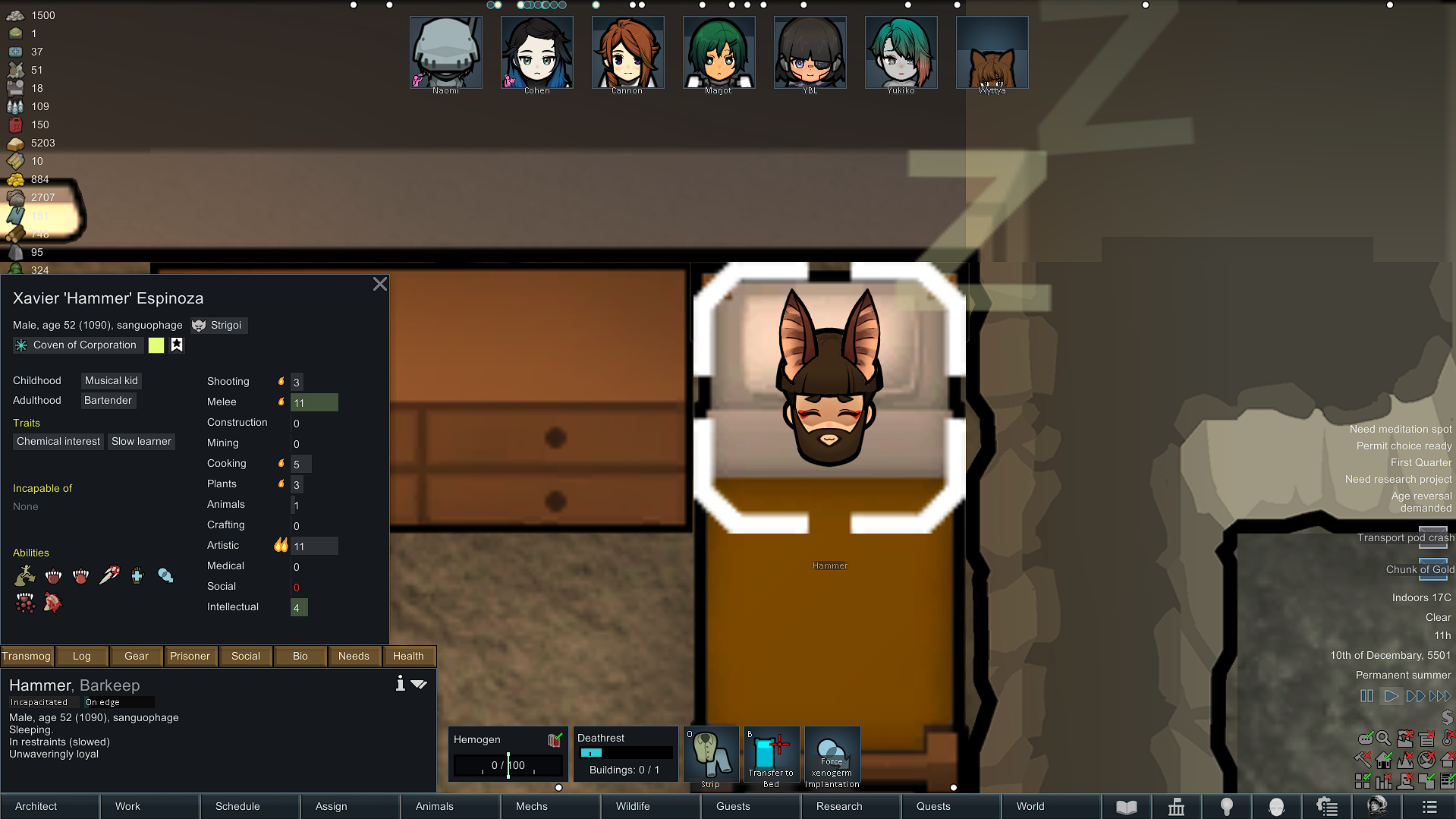 My two starting characters of the only run that I actually saw to the end, Luna couldn't pick just one struggle, as she was already a psychically enhanced melee battle maniac, but after she was voidtouched and Sanguophaged, she became a one Maru army.