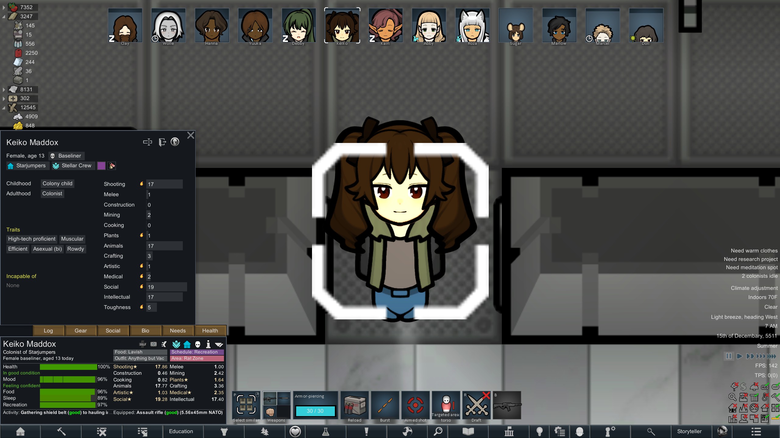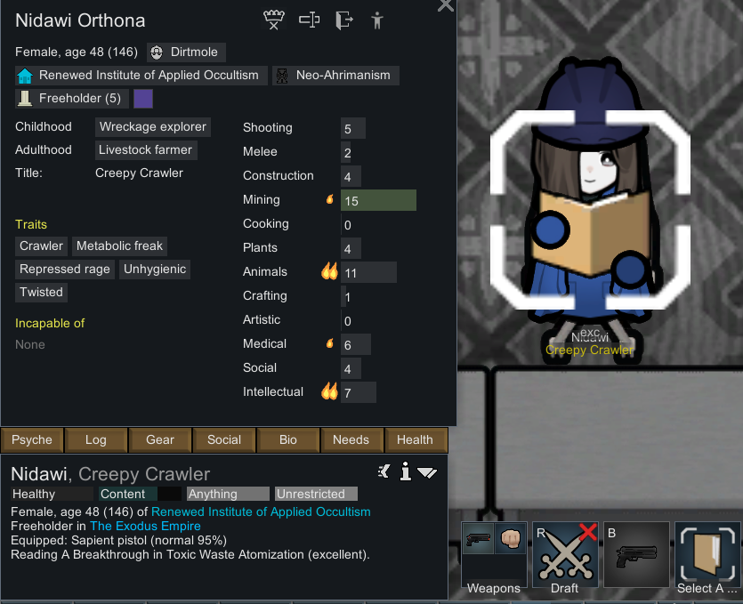 Lily was the mechanitor smokeleaf loving Kiiro with a 50 cal sniper, who was always eventually accompanied by her mechs and was responsible for every friendly fire incident in the colony.