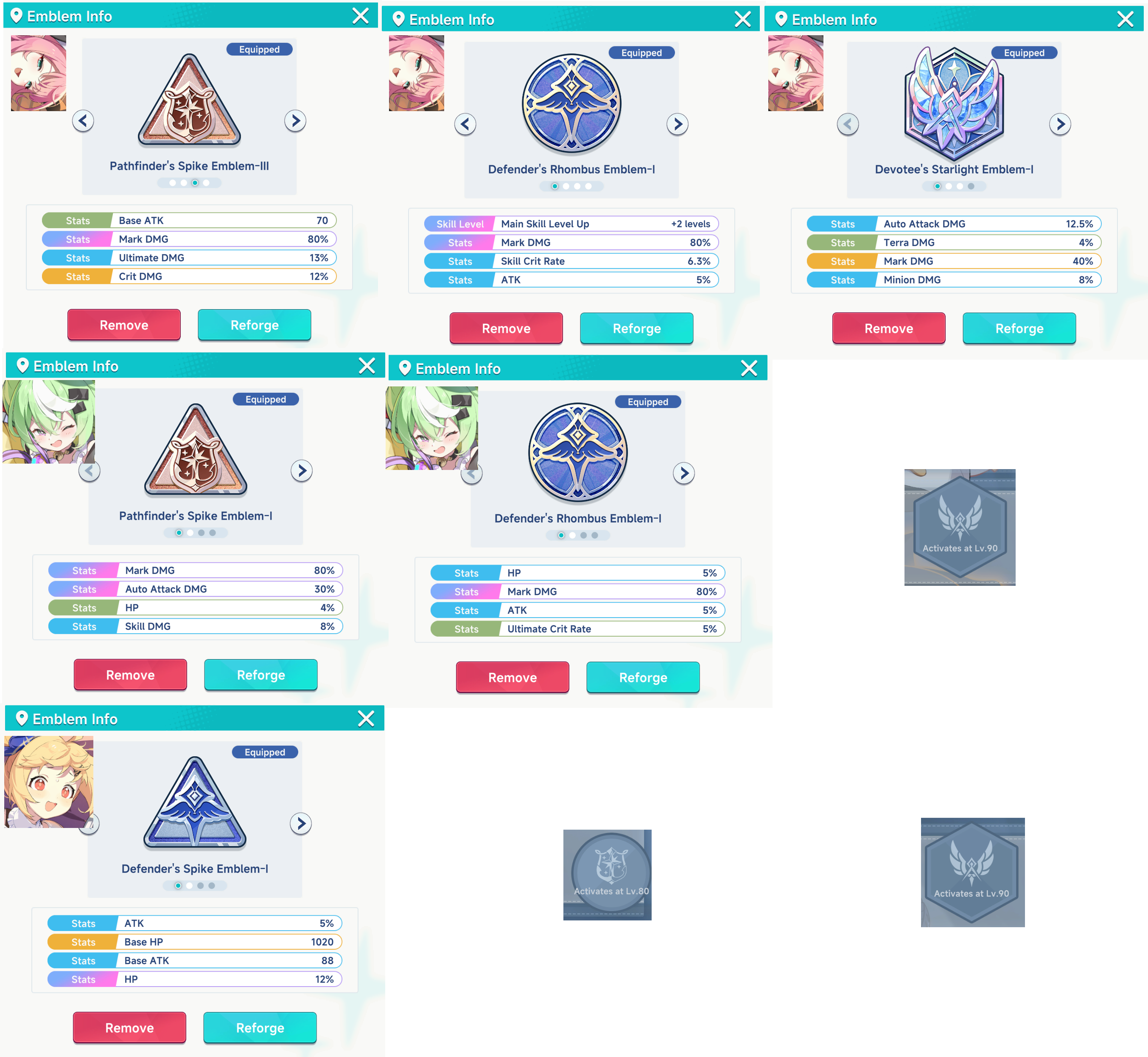 So for Fuyuka, what Emblem rolls are you trying to get on the Level 90 one? Potential Levels I assume? But into which Potentials?