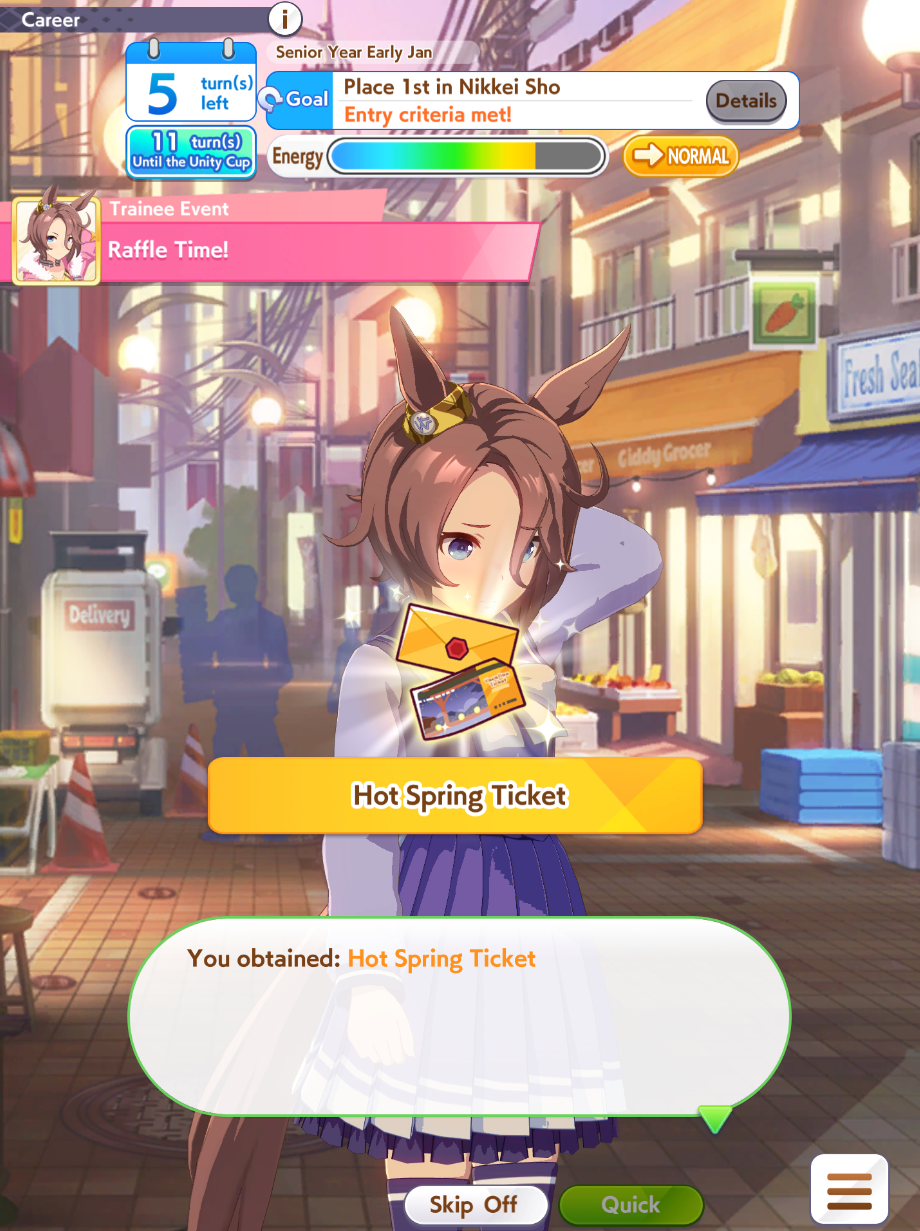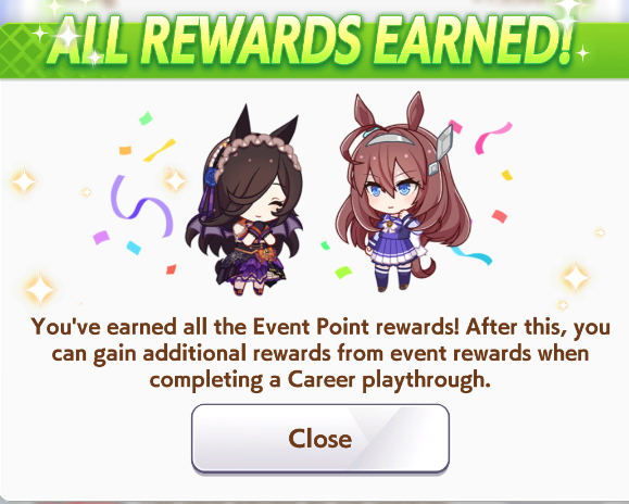 >>548242863The qol adjustments were really nice this time. Getting +90% event points every run without being forced to use the cards or the trainees really helped. It would have been painful to get the last 500 carats without that.