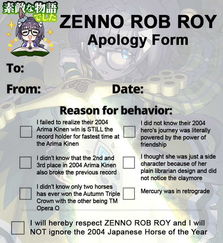 Previous: >>548218178>Global Game NewsCurrent Scenario: Aoharu Hai aka "Unity Cup"Current Specials Missions: Half Anniversary Part 2+3Current Rate Up: Rice Shower (3* Alt), Super Creek (3* Alt), Tamamo Cross (SSR), Zenno Rob Roy (SSR)https://umamusume.com/news/100040/https://pages.snep.pw/uma/anni-skill-changes/11/24 - Halloween EventDecember TBA - LIBRA CUP - Kyoto 3000m>JP Game NewsCurrent Rate Up: Buena Vista (3*), Transcend (3* Alt), Wonder Acute (3* Alt), Tokai Teio (SSR), Mihono Bourbon (SSR), Kiyoko Hoshina (SSR)New Scenario "Yukoma Hot Spring" releasedTimeline: https://uma.moe/timeline>IP NewsUmamusume Cinderella Gray 2nd season started weekly airings on 10/5>Thread Clubshttps://rentry.co/umaglobalclublistYou must be E3 (20k points) to join a circle. Apply with /uma/ or /vg/ in your profile or post ID in the thread.>All Guides & Resourceshttps://rentry.org/uma26Game databasehttps://gametora.com/umamusume (Click the gear to switch between JP / global server info)A basic guide for newfagshttps://rentry.org/umaglobalFind networks if your region is blocked from the game or clienthttps://www.umavpn.top/93Seiyuu & Concertshttps://rentry.org/umst