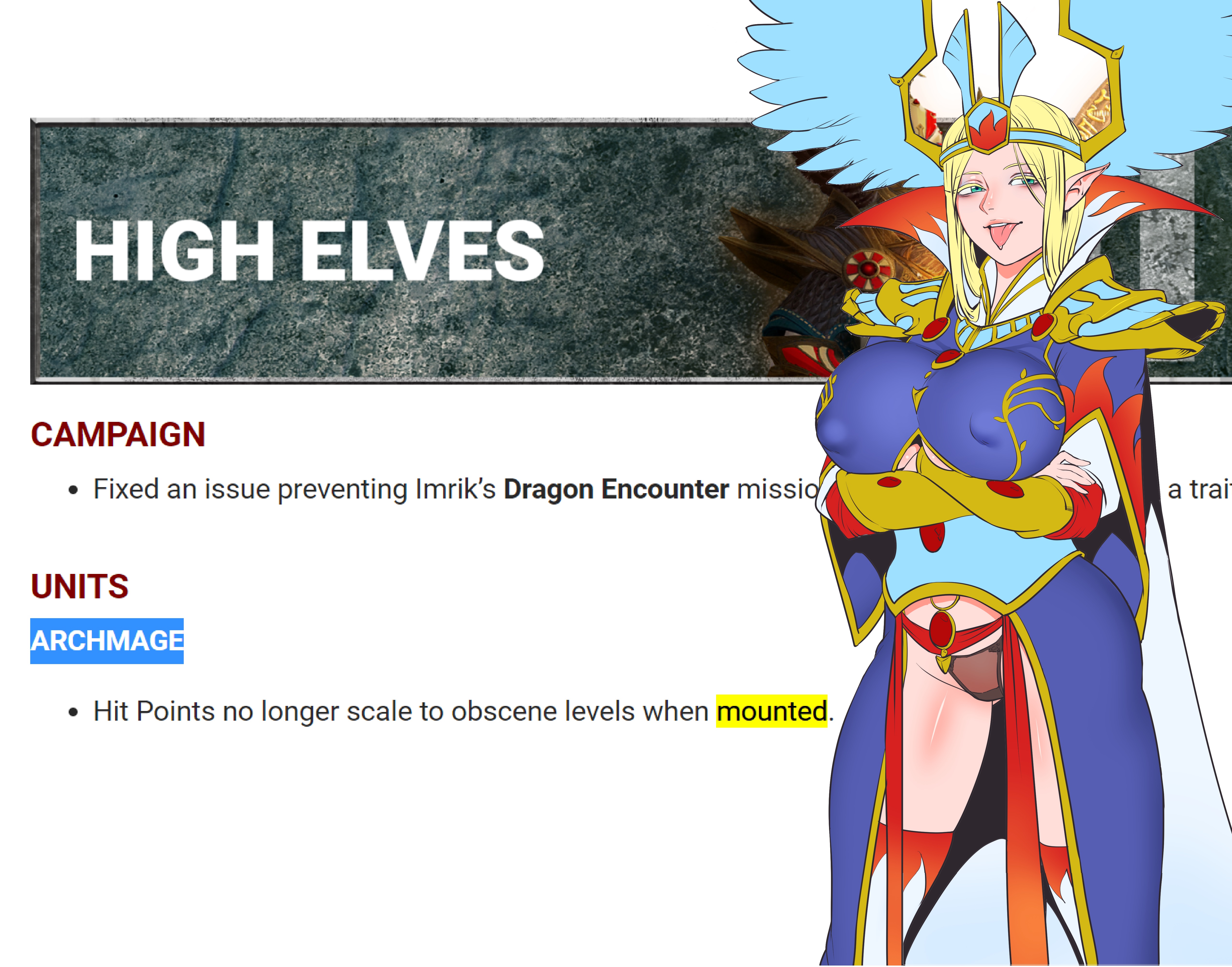 >>548303563Ehhh... The fact that it uses Attila instead of Warhammer as the base game the mod is built on makes me much less excited.I know GW had a melty at the mere thought of anyone making a LotR mod, but there's so much that Attila doesn't do which LotR really needs. I mean flying units alone is already huge, how am I gonna play Mordor without Fell Beasts?And yeah Warhammer has it's problems but so does Attila, cavalry and elephants and archers all feel like they don't do anything in Attila. I would rather have the gamey HP system of Warhammer if it meant my elf archers could do actual damage to the enemyAnd big monsters are just so much better simulated in Warhammer than Attila. How are you going to have an Oliphaunt in Attila? Basic elephants already don't work, how's a giant single-entity elephant going to be any better? But Warhammer already has colossal single entities, and they function well even if they're basically never cost-effective. Hell Warhammer already has a mod (Araby) that includes a unit which is basically an Oliphaunt.It's not like you couldn't do this in Warhammer modding either, if anything it'd probably be easier. Warhammer modding is super advanced, we have entire map replacements, fully originally voiced units, fully original spells and effects that can do pretty much anything I can think of, original fully scripted quest battles etc.You absolutely could put together a LotR overhaul for Warhammer with the tools we already have.The one thing is that it wouldn't have naval battles, but LotR has basically zero naval battles anyway. Numenor and its navy is dead and gone, I think there was some naval conflict between Gondor and Umbar but that's hardly central to the setting. If anything, LotR has WAY less naval stuff in it than Warhammer Fantasy, which had multiple naval subgames on tabletop.A LotR overhaul for Warhammer is so obvious that I genuinely don't understand why anyone hasn't done it. Fuck GW, do it anyway.