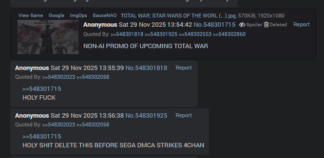 >>548255929Waaait fuck. Can you imagine.>Announce TW LOTR on December 4>Hit mod that's been in development for a decade with a DMCA a week after its coming outI can't even imagine the anal hurt this will cause.