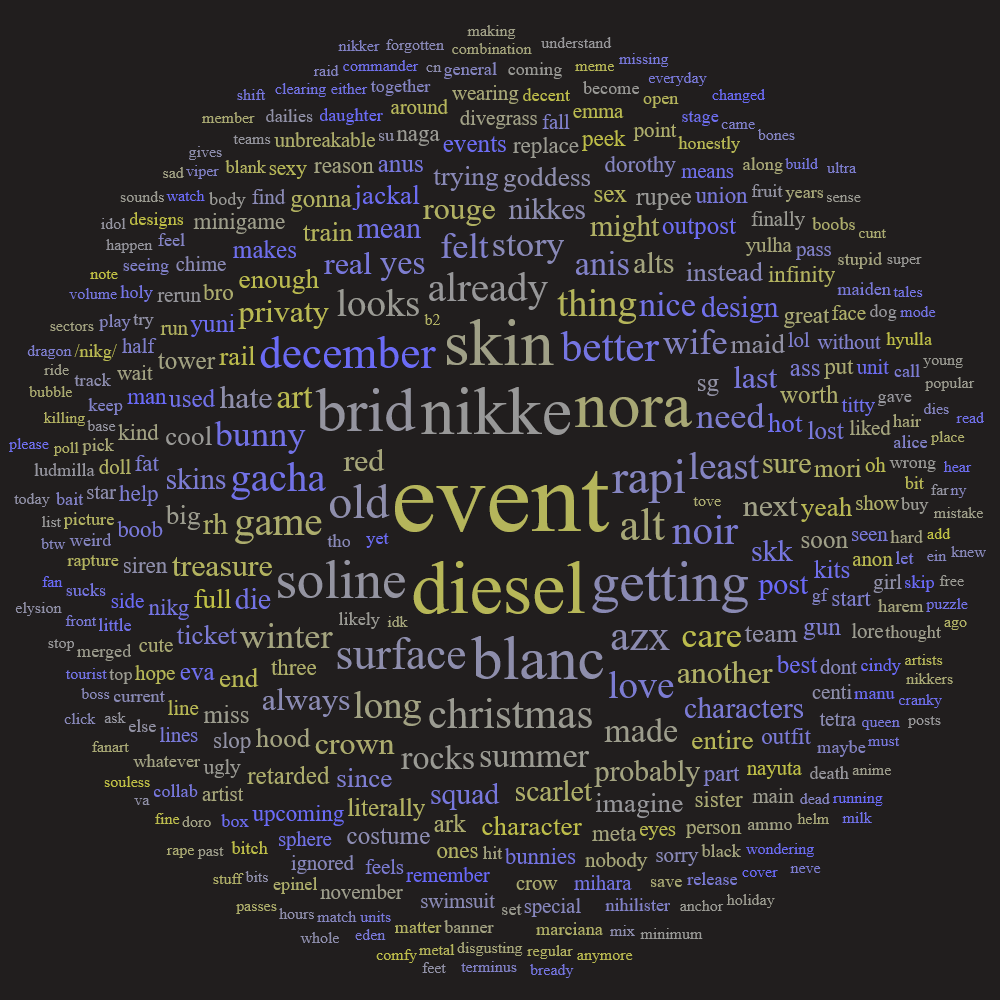>>548286572Events can sometimes be SKKless, I don't mind too much (in most stories the MC isn't always present in every single relevant event).Bond/Advises should always feature the SKK in some way, since that is the chance to bond with the Nikke and to establish the kind of relationship they have with him.Nikke on Nikke interactions should be left to Outpost encounters, Sidestories or Event subplots.