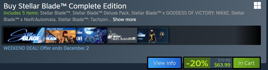 Intern here. Stella Bladeru is currently 20% off so good time to get it if you've been putting it off. You can still get the Scarlet skin up until Dec 11 too.