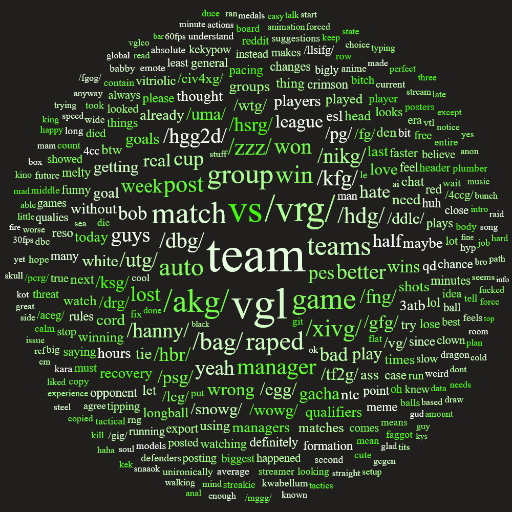 Previous: >>548188583>What... is this?Put simply, a simulation of Pro Evolution Soccer being competed between teams which are embodiments of boards of the 4chan imageboard. The players represent facets of each board's culture. All of the matches are AI versus AI. However, humans "manage" each team, creating their tactics and giving input during games as they happen to make substitutions and tactical changes as they see fit.https://implyingrigged.info/wiki/FAQ>Where can I watch the cup?https://isthisliv.com/4cc/stream.html>Upcoming Cuphttps://implyingrigged.info/wiki/2026_4chan_Winter_Cup>Current /vg/ Leaguehttps://implyingrigged.info/wiki//vg/_League_25>Upcoming Invitationalshttps://implyingrigged.info/wiki/Divegrass_Before_Christmas_6:_This_can%27t_wait_a_monthhttps://implyingrigged.info/wiki/LAN_Party_the_3rd:_Admins_of_the_Frozen_Thronehttps://implyingrigged.info/wiki/2025_Kurisumasu_Cup>Wiki:https://implyingrigged.info/wiki/Main_Page>Sekkrit Code37pebis>DLC Passworddivegrass>Booruhttps://isthisliv.com/booru/>Other videoshttps://implyingrigged.info/wiki/Videos>PES Infohttps://implyingrigged.info/wiki/Pro_Evolution_Soccer_2015https://implyingrigged.info/wiki/Pro_Evolution_Soccer_2017>Previously>Extreme melties >/gfg/ and /kfg/ frauds?>ESL's love Arknights >Even more shitposting
