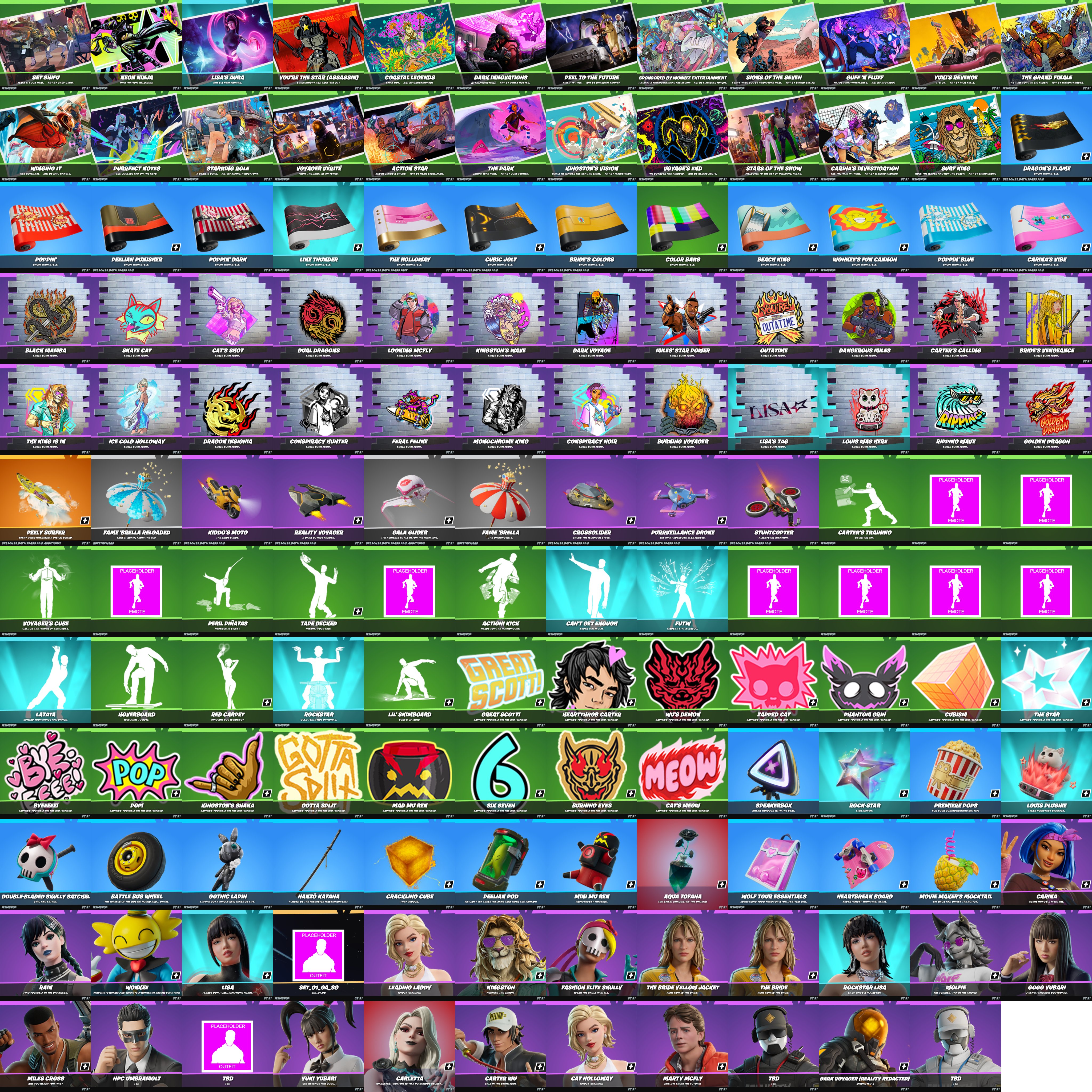 Battle Royale Pass Updated>Unlock over 80 rewards including: 7 Outfits Styles, and up to 1,000 V-Bucks back!Level Disclaimer>Some rewards require completing quests in Battle Royale / Zero Build, Blitz, or Reload. Not all cosmetics are usable in all experiences. For more details on item variations and limitations, see http://fn.gg/cosmetics