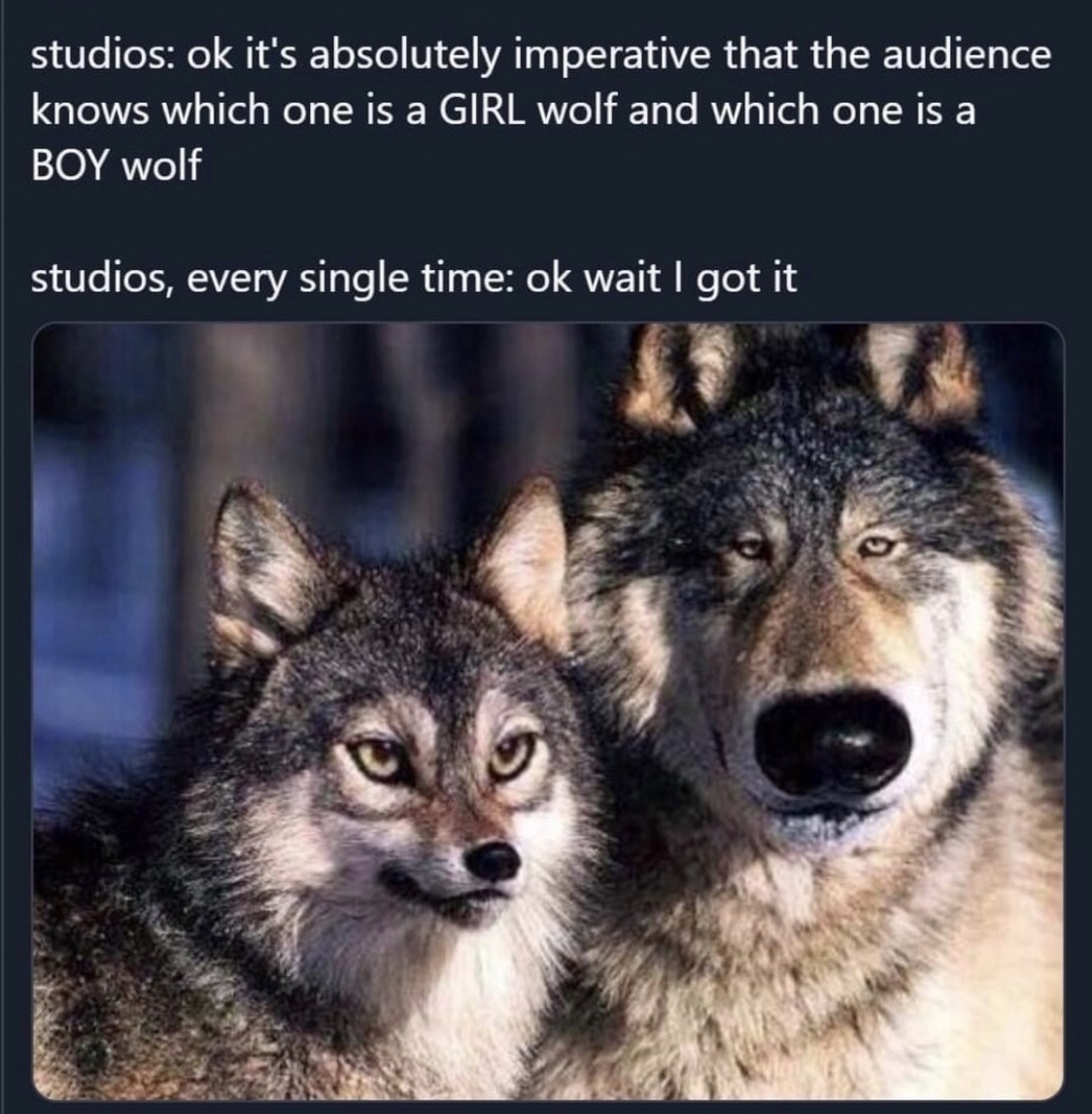 This wolf would 100% suck your dick in exchange for a cigarette in the back alley behind Blockbuster.